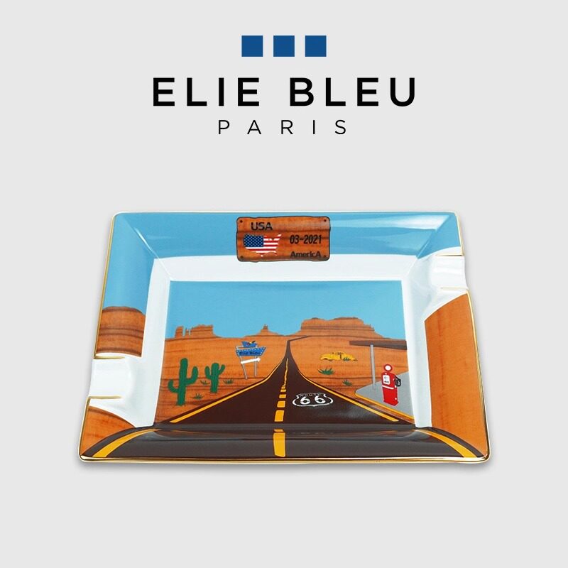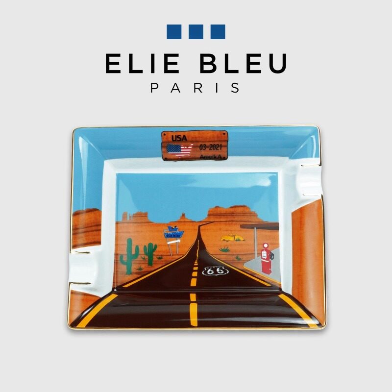法国ELIE BLEU双人位高端陶瓷雪茄烟灰缸66号公路系列送茄托