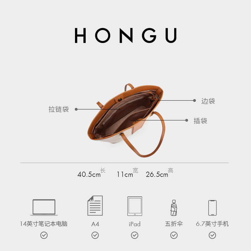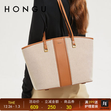 HONGU红谷通勤单肩包包女新款时尚高级感百搭撞色大容量托特包女