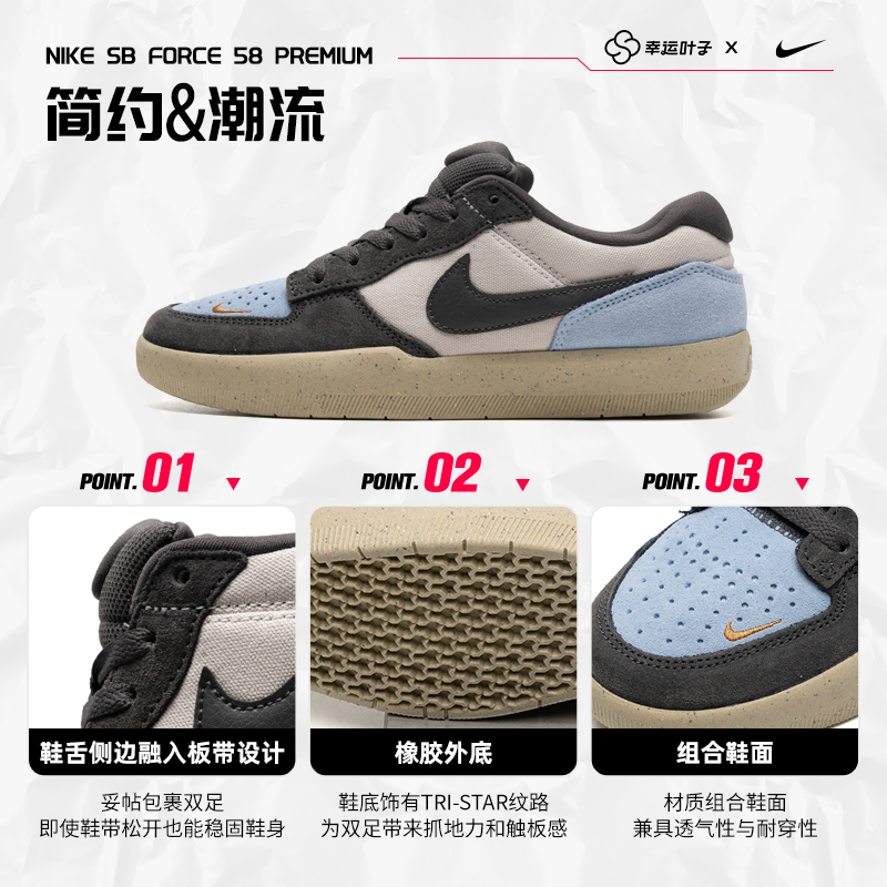 耐克男鞋官方正品25冬季新款SB Force58滑板鞋轻便耐磨低帮休闲鞋