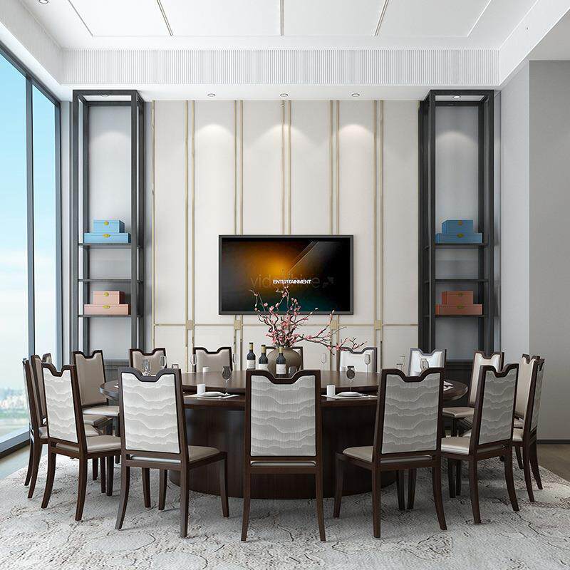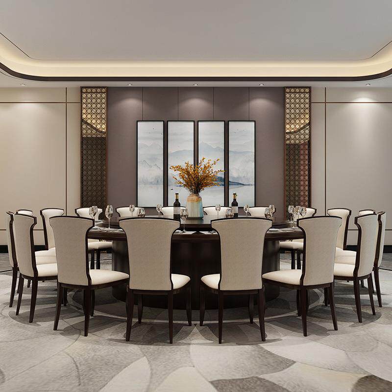 餐桌店圆桌新Z115中桌式椅成套组合包间电动大圆酒盘家具实木