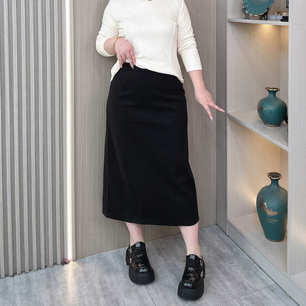 毛呢西装半身裙女秋装新款大码胖mm高腰显瘦遮胯a字群开叉包臀裙