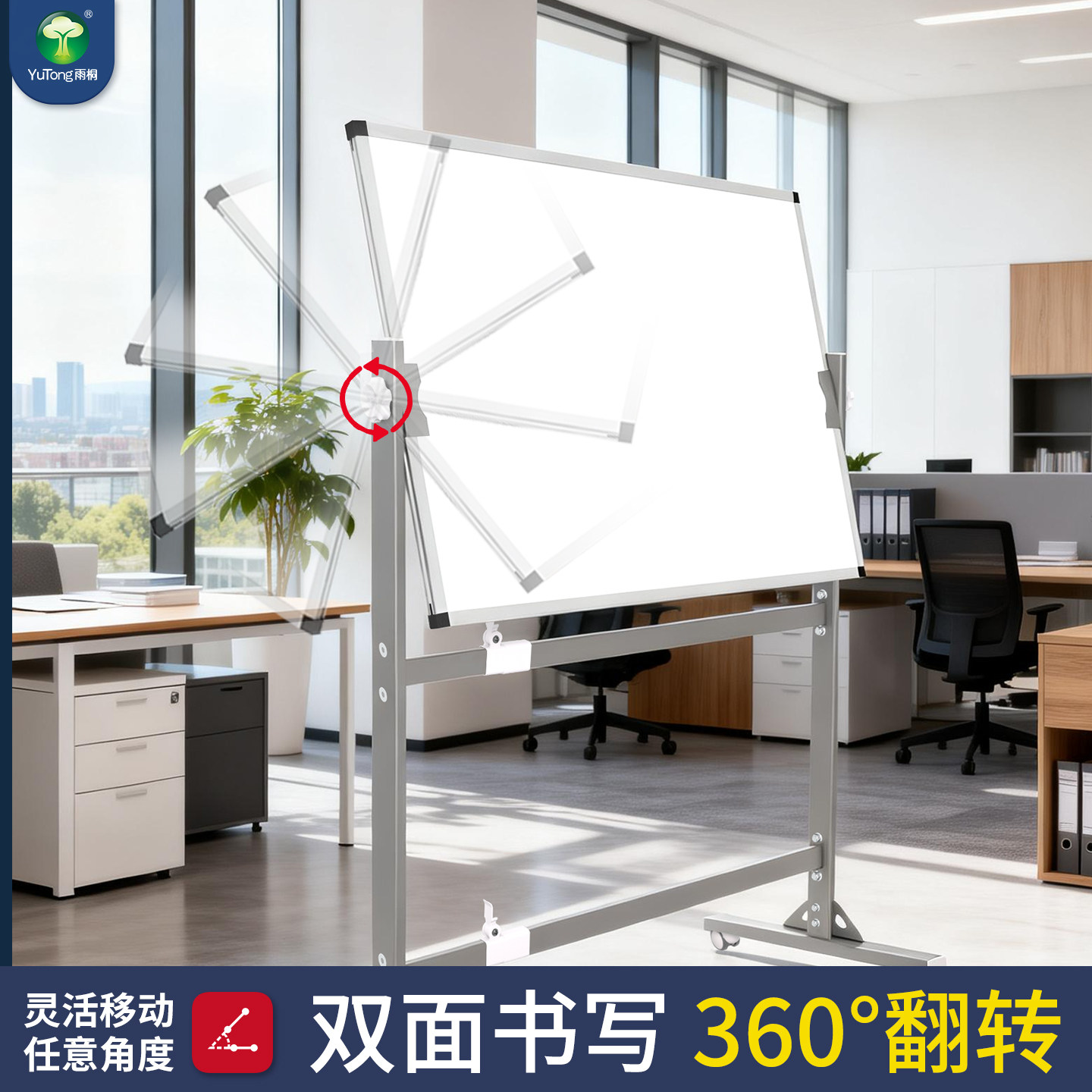白板落地支架式可移动带轮双面翻转写字板加厚稳固培训办公展示架