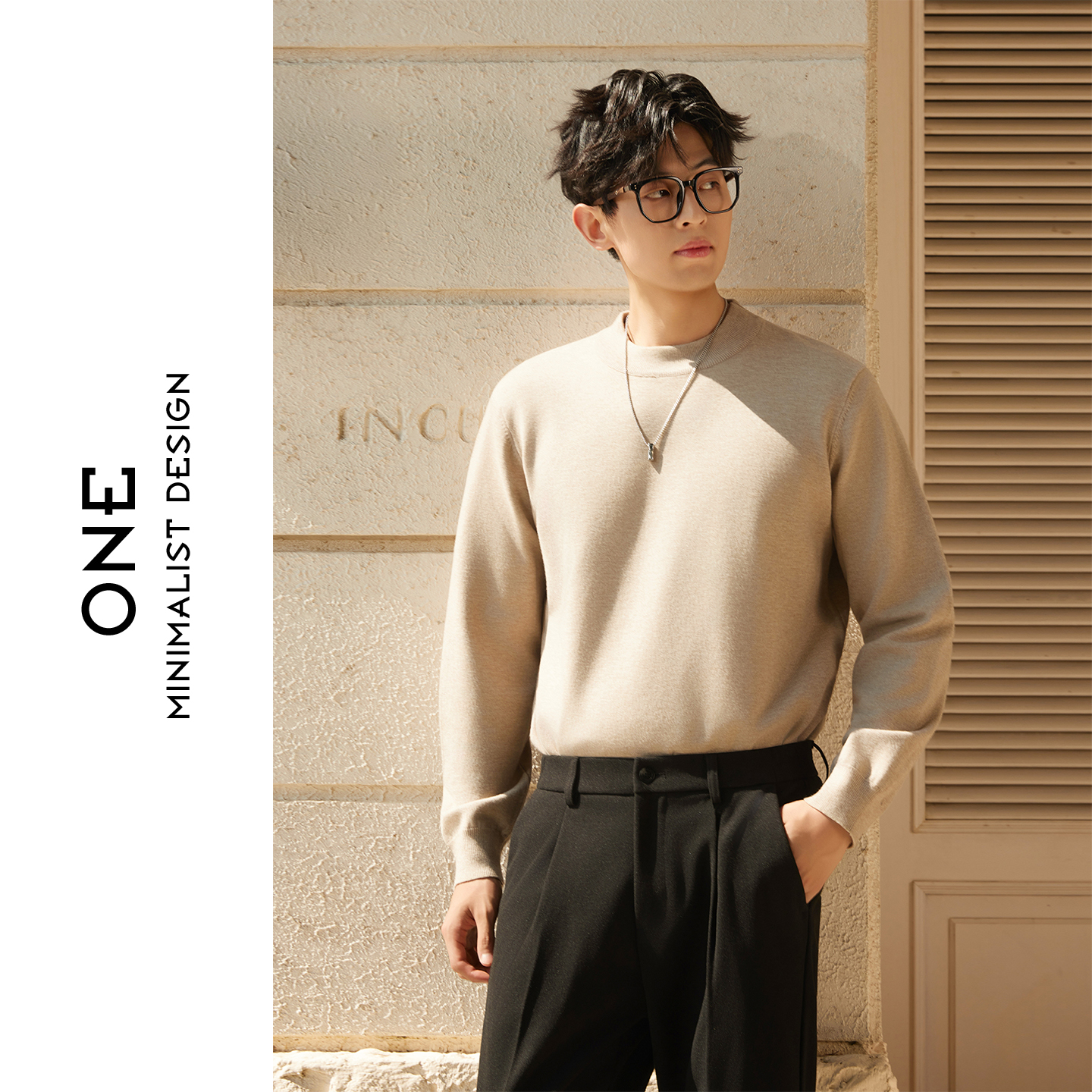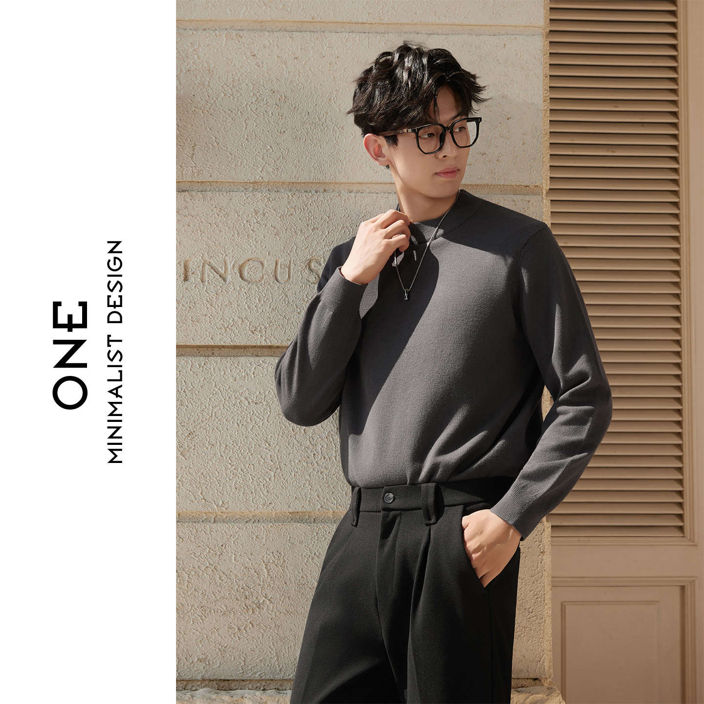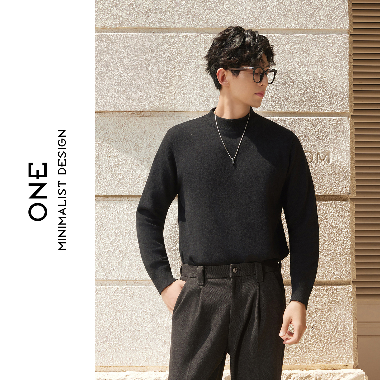 秋冬新款男士羊毛半高领针织衫毛衣纯色简约百搭长袖上衣打底衫