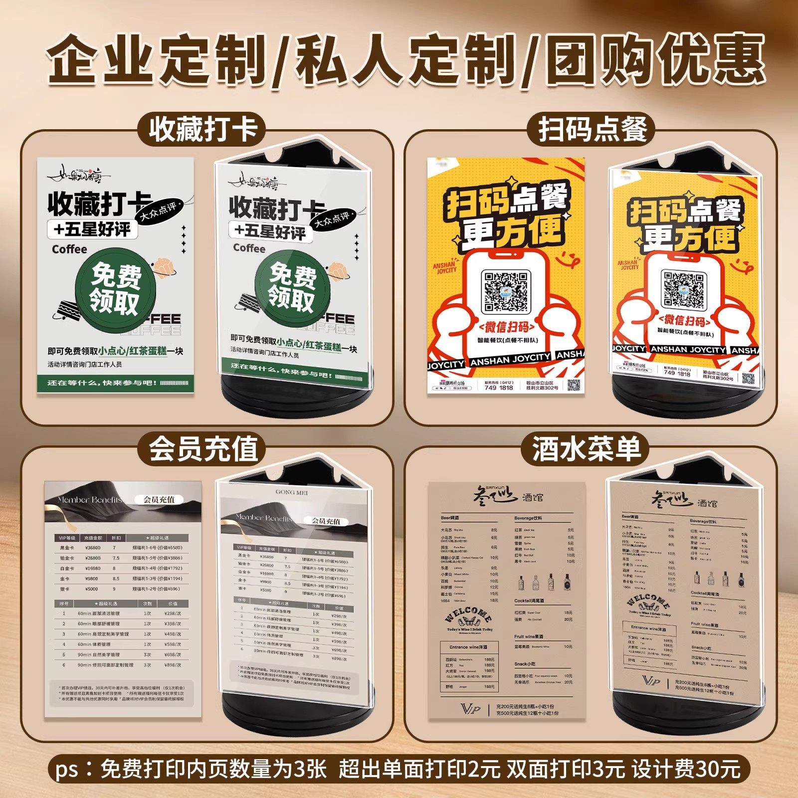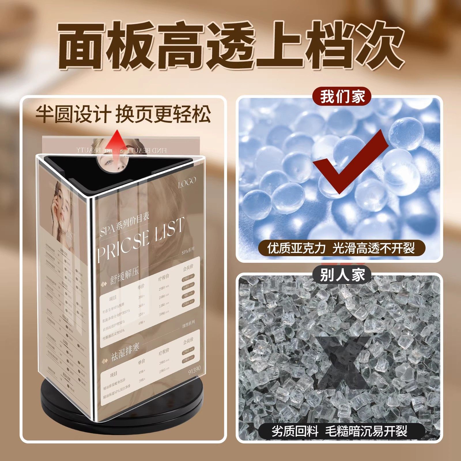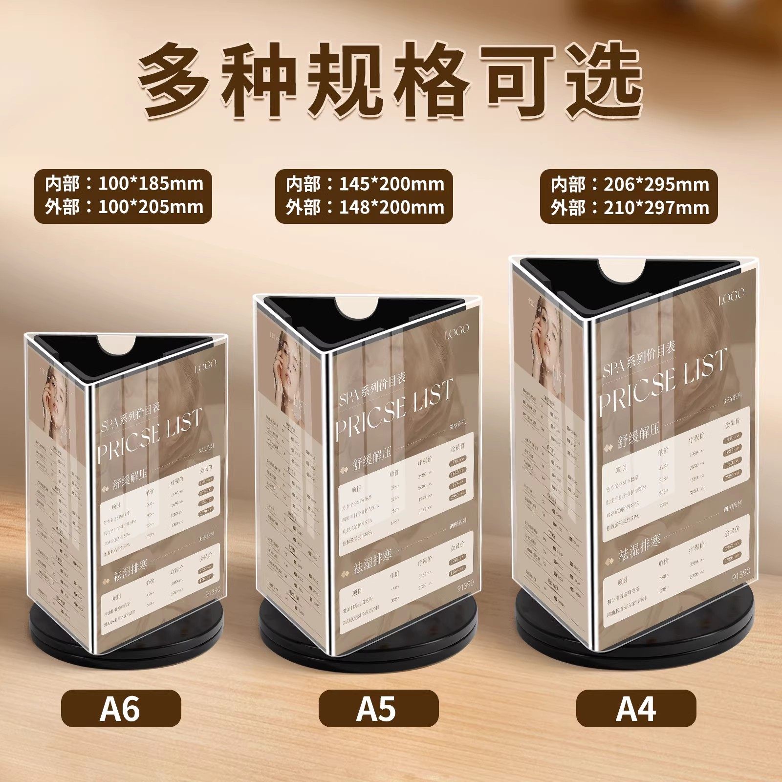 三面旋转台卡高品质酒水牌亚克力台卡架六面a4桌牌a5旋转餐牌菜单展示牌三角台牌桌面立牌价格水牌展示架餐厅