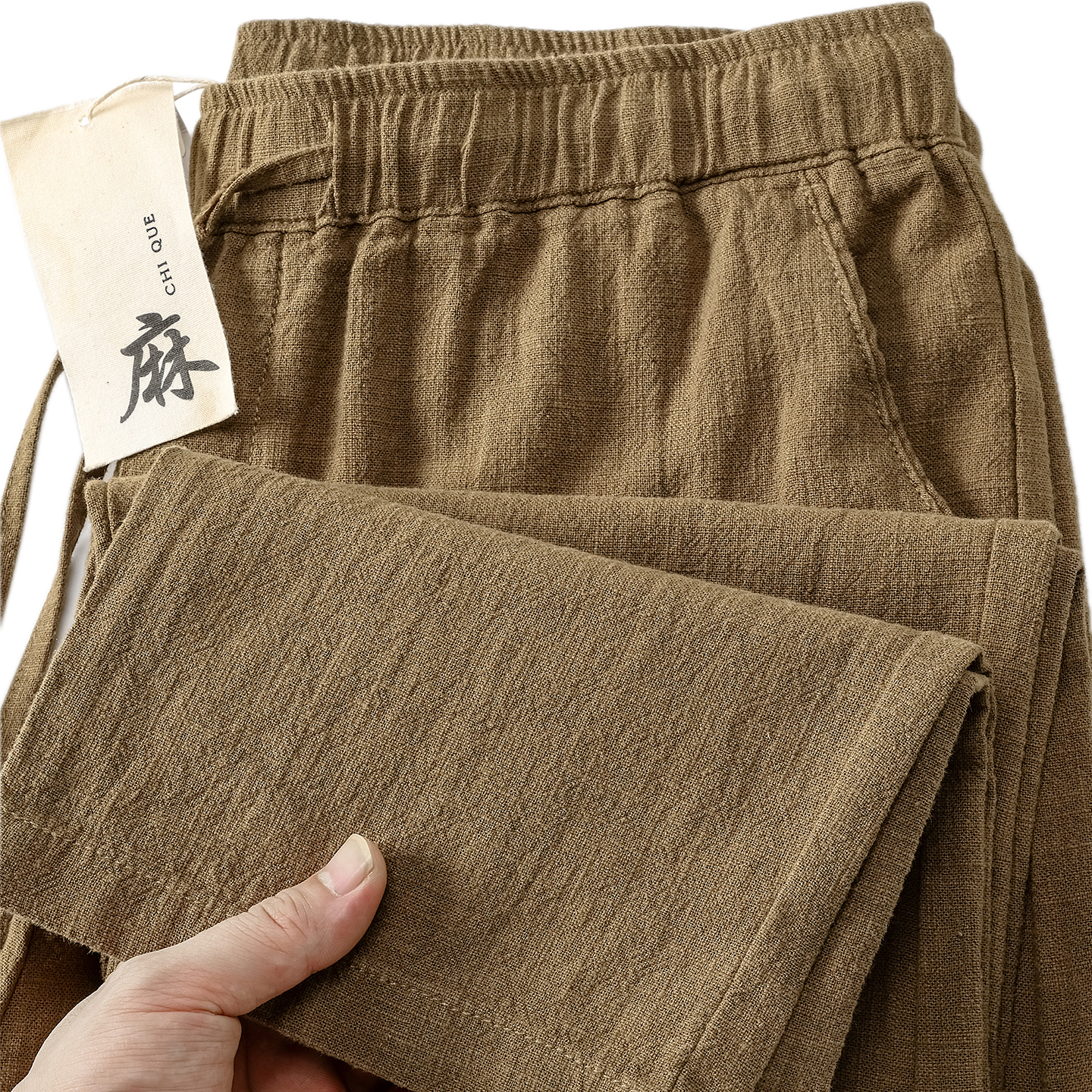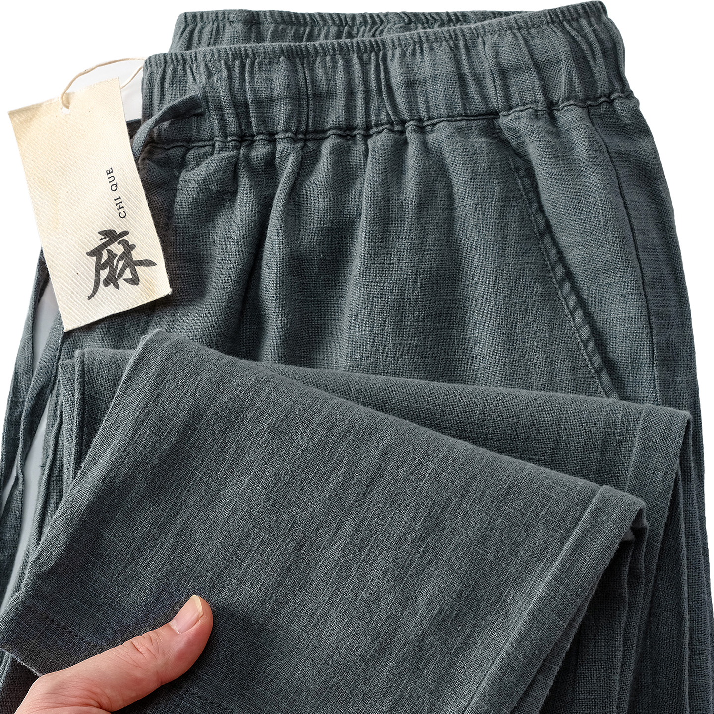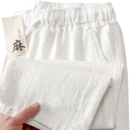 棉麻长裤春秋款直筒宽松苎麻裤子松紧腰中国风白色亚麻休闲裤男士