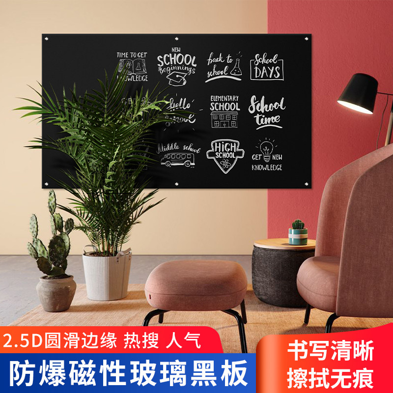 钢化磁性玻璃黑板办公会议写字板教学培训白板家用儿童涂鸦黑板墙