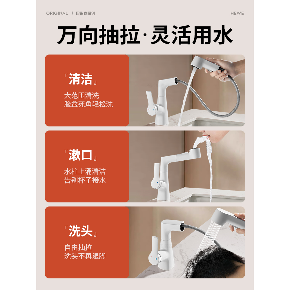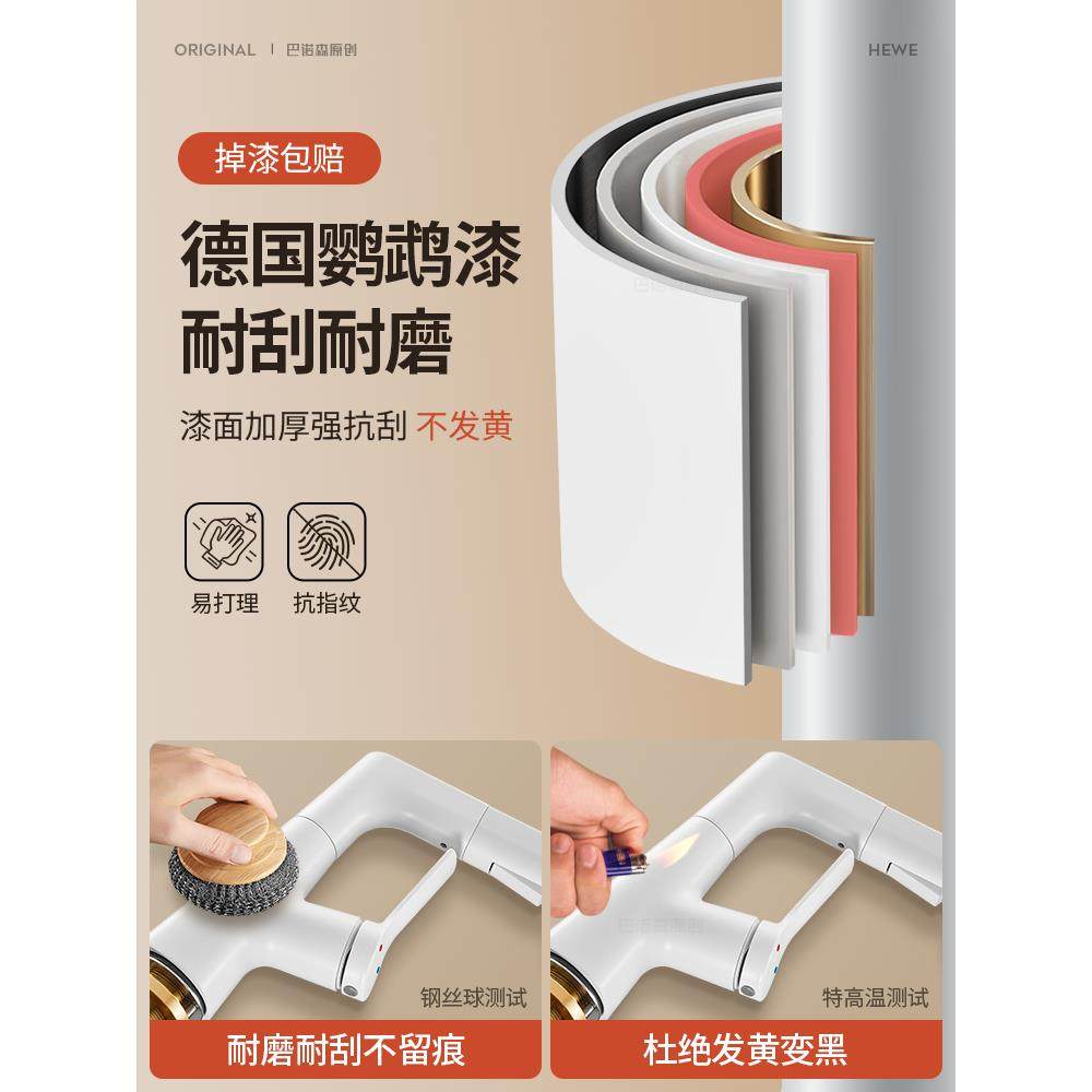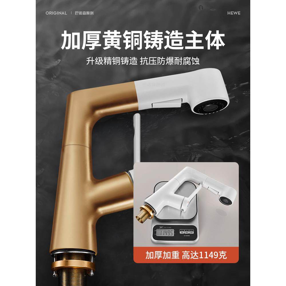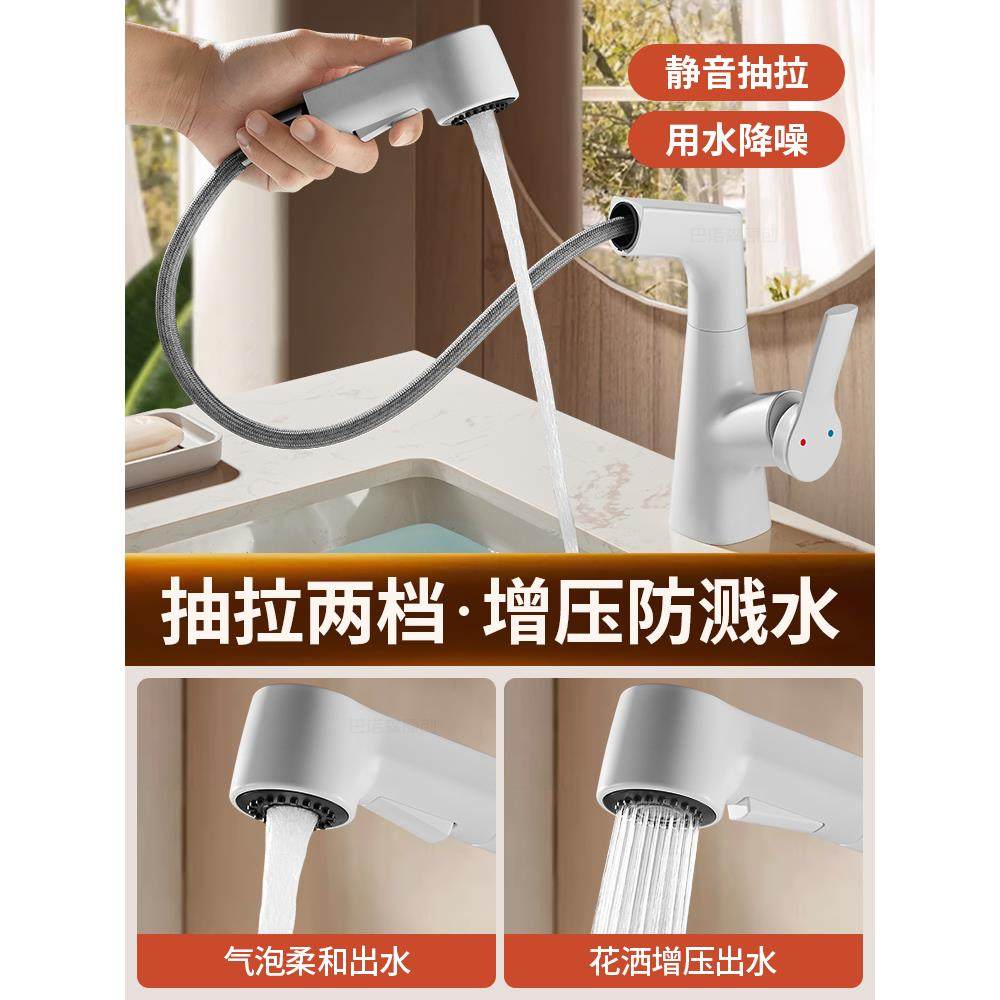 适用于九牧摩恩奶油风全铜白色升降洗手盆水龙头家用洗脸盆抽拉式
