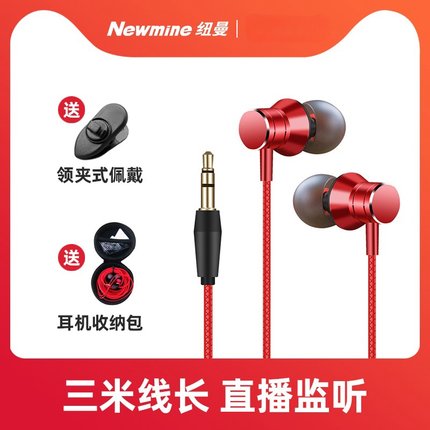 纽曼 XL30加长3米直播监听耳机入耳式有线不带麦主播专用声卡耳塞