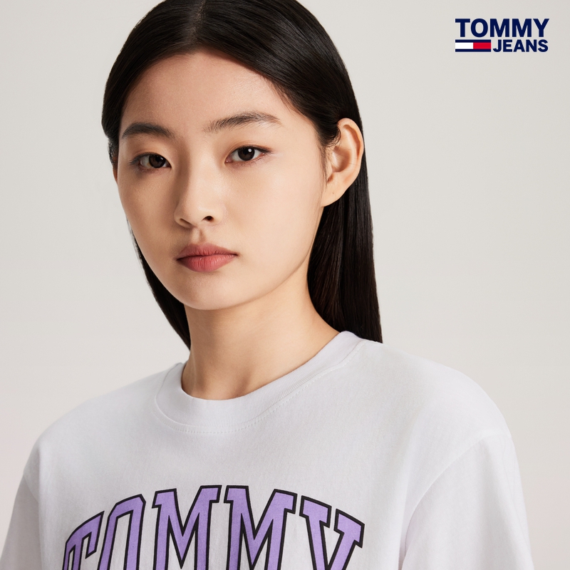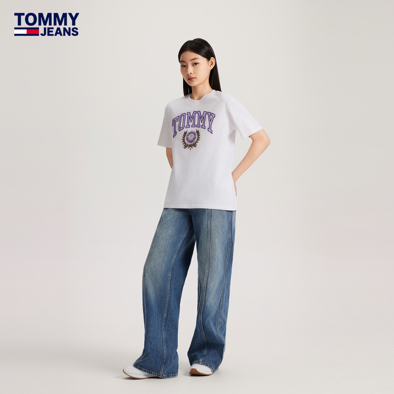 Tommy夏季女纯棉美式学院复古潮流徽章印花宽松圆领短袖T恤
