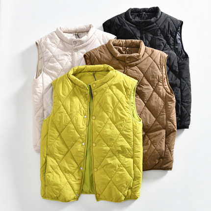 实力选手!轻盈防风保暖!秋冬男女百搭纯色立领绗缝夹棉马甲背心