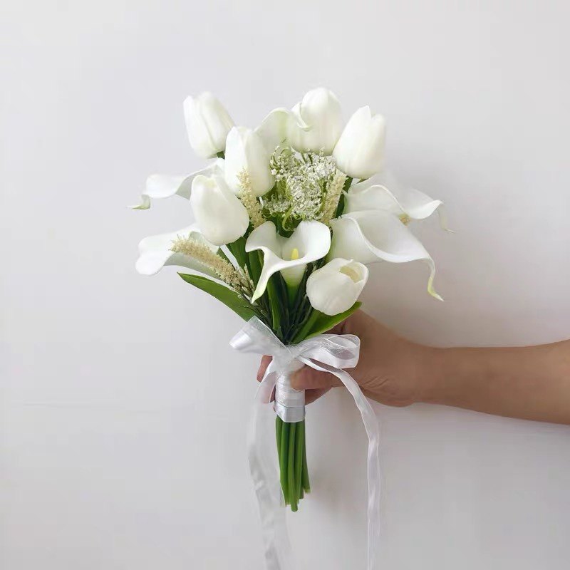 韩式新娘手捧花 马蹄莲郁金香高度仿真花 婚纱摄影领证手捧花