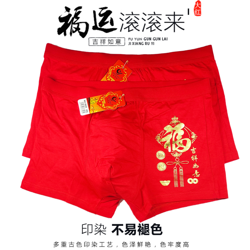 纯棉男士内裤大红色福字本命年平角裤中青年裤头加大码4条经济装