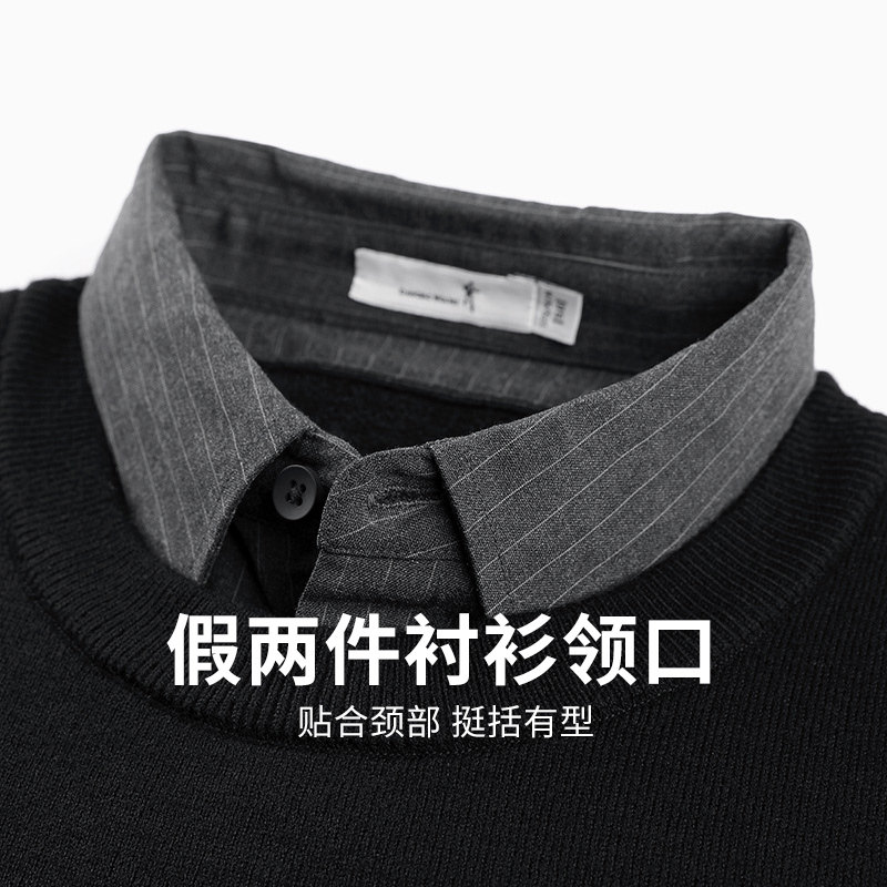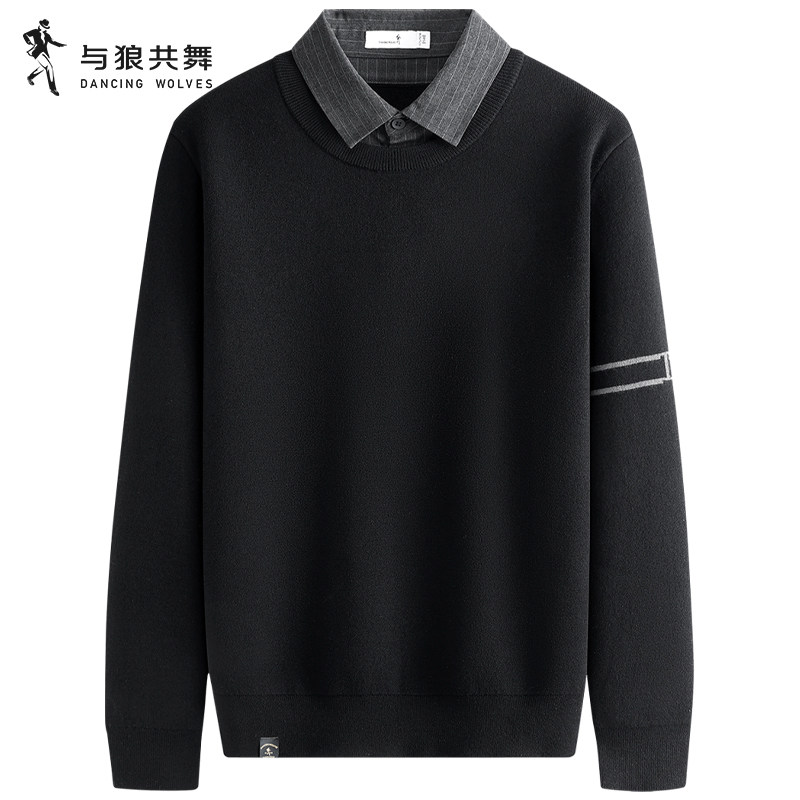 【加绒】与狼共舞假两件纯羊毛衣男2025秋冬新款保暖衬衫领毛衫男