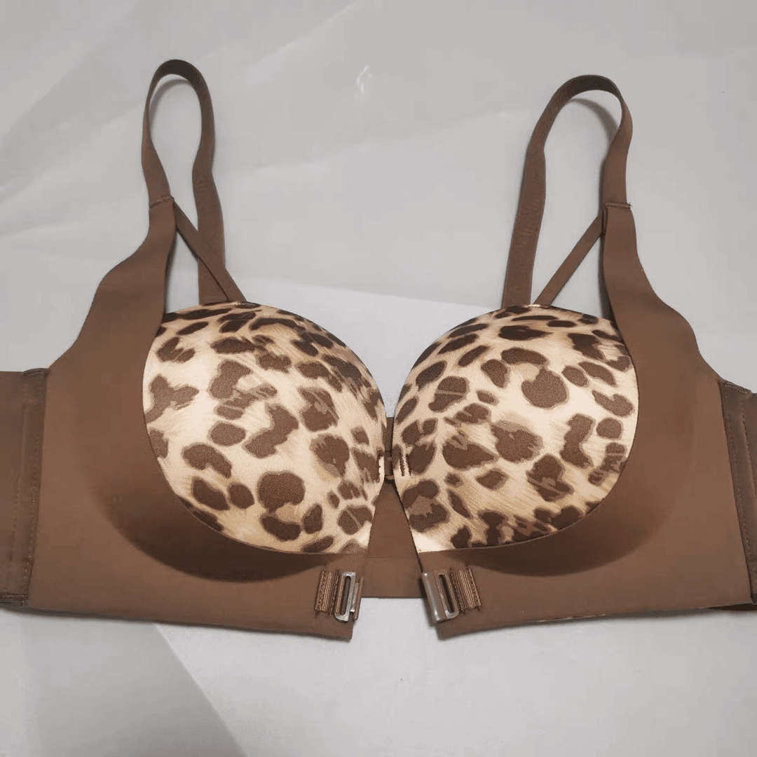 前扣内衣女士小胸显大聚拢无钢圈收副乳防下垂新款性感豹纹文胸罩