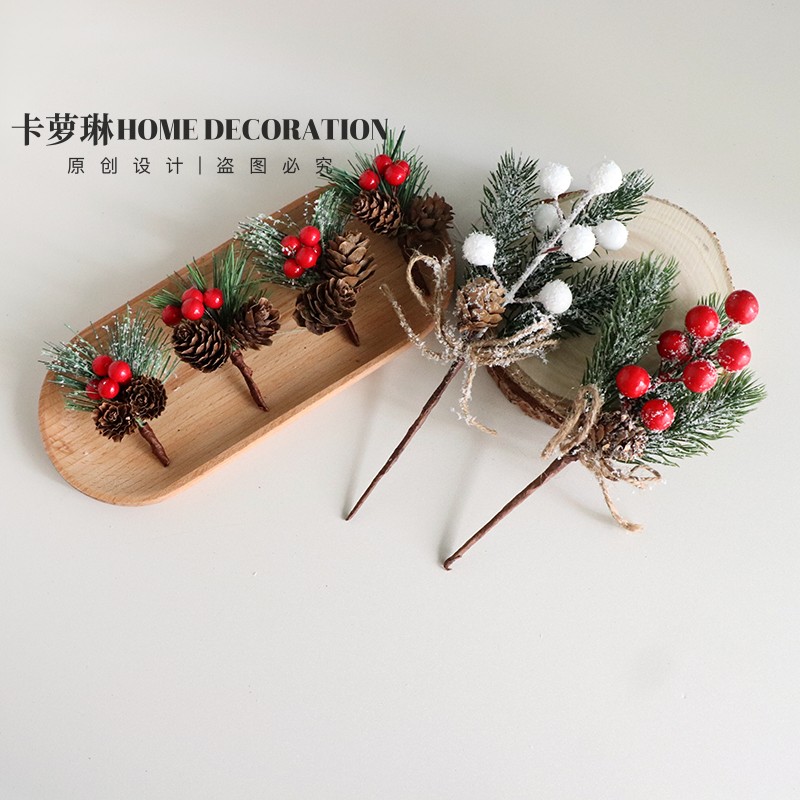 松花松针花迷你圣诞树配件礼盒装饰仿真果实圣诞装饰饰品桌面摆饰