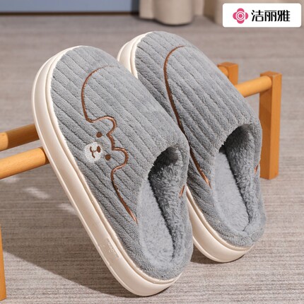 洁丽雅棉拖鞋男士冬季家居2025加绒厚底毛绒女款秋冬室内防滑半包
