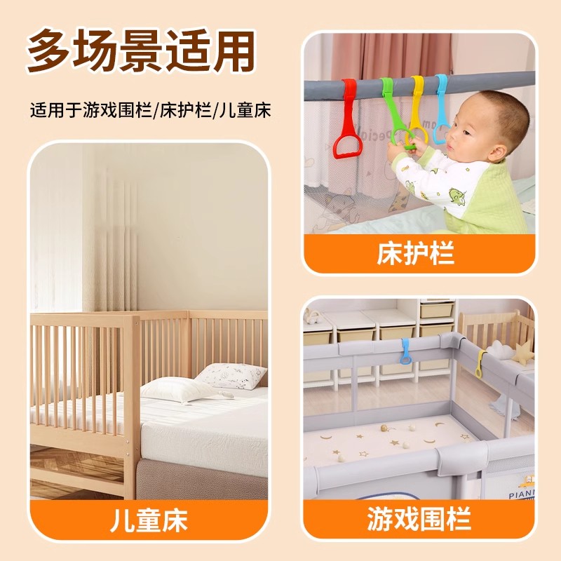 婴儿学站立手拉环宝宝床围栏吊环防护栏儿童游戏围栏学步辅助工具