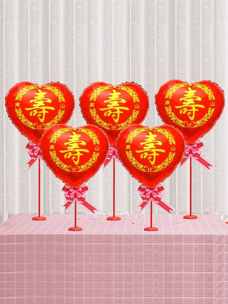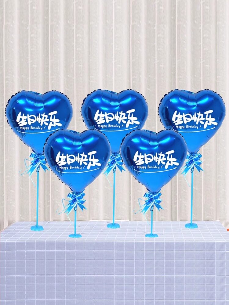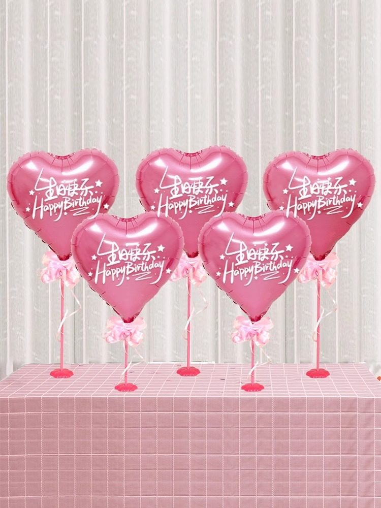儿童宝宝周岁生日派对桌飘装饰气球场景布置中英文印字爱心铝膜球