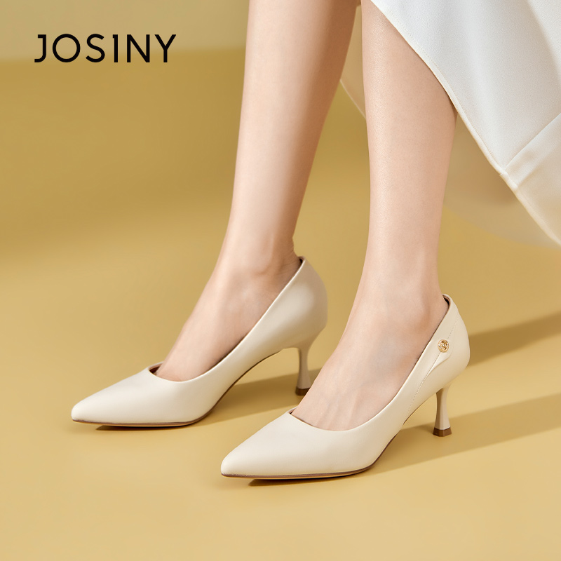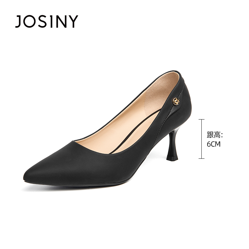 卓诗尼春秋季新款女鞋尖头单鞋简约细高跟套脚一脚蹬时装通勤百搭