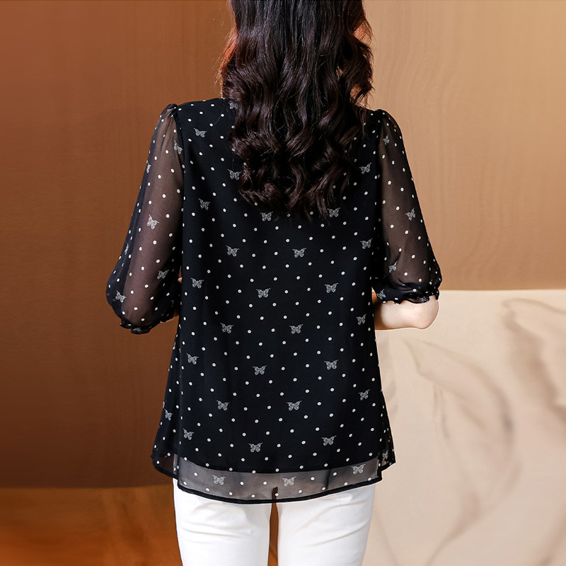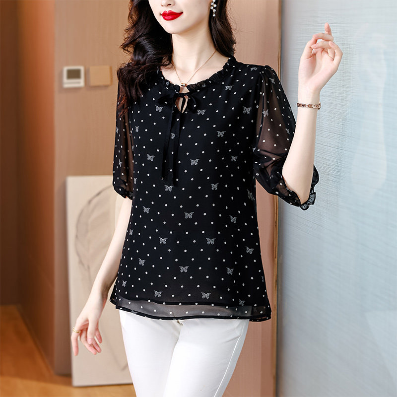 瑶蝶夏季新款时尚中袖雪纺衫女