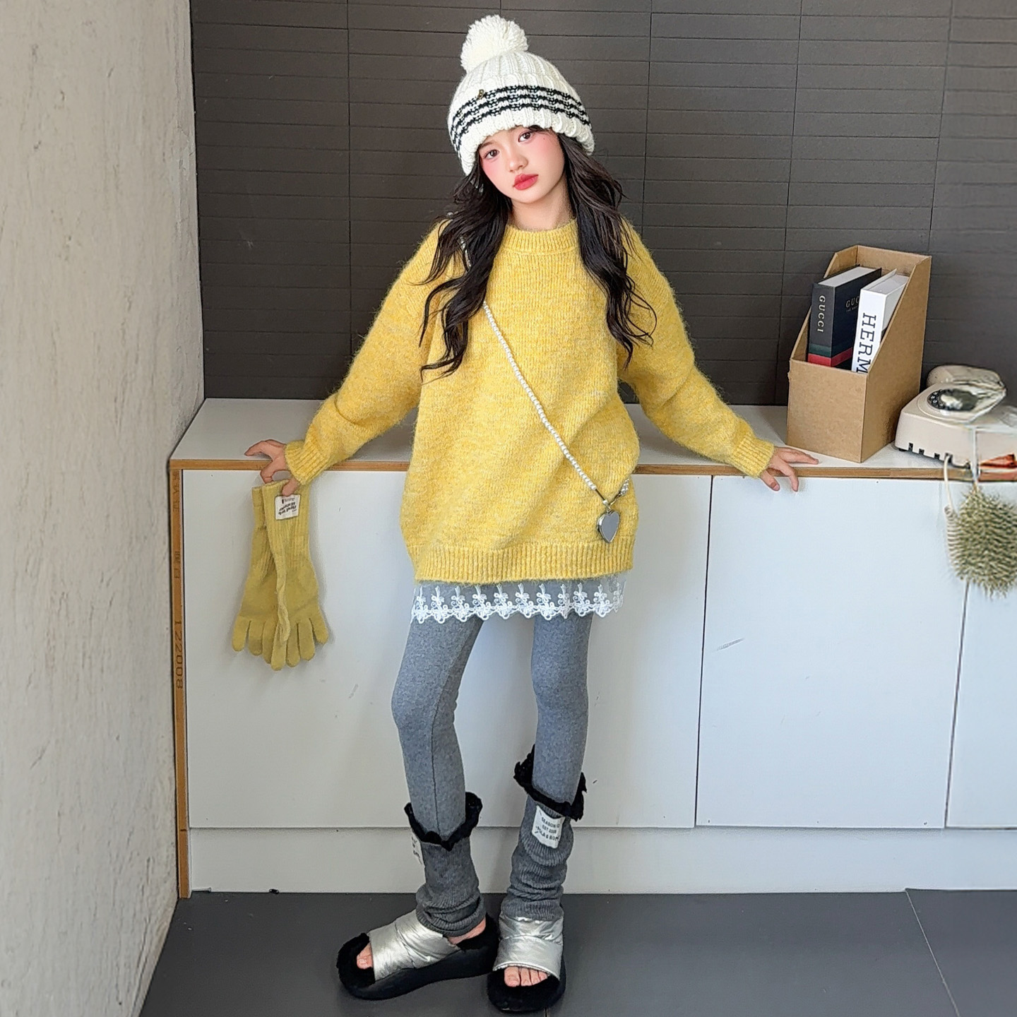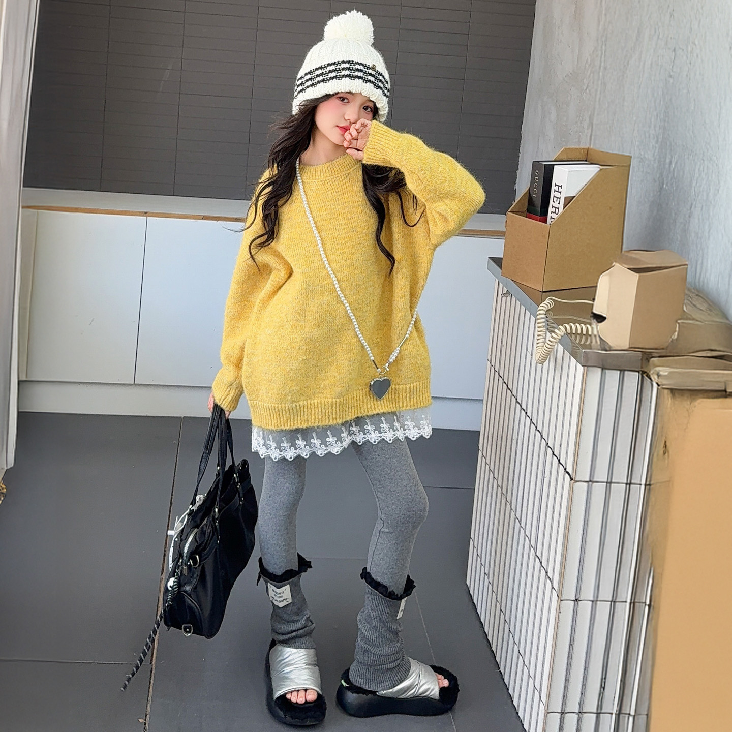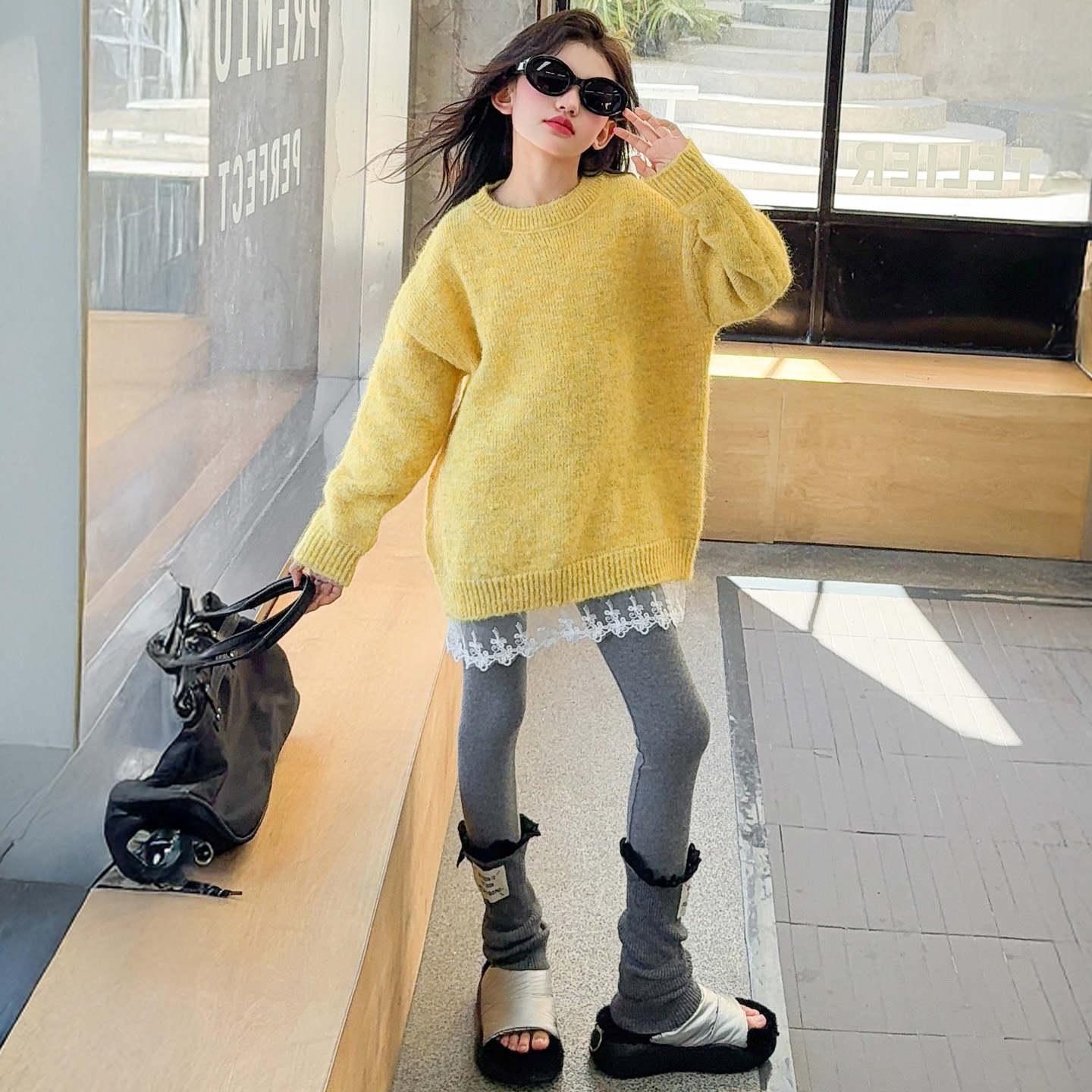 女童毛衣秋冬2025新款儿童洋气针织上衣女大童秋季宽松套头毛线衣