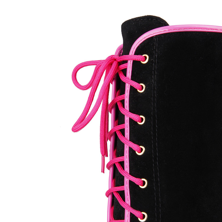 秋冬性感骑士靴前系带高筒靴圆头超高跟女靴内增高大码靴长靴子