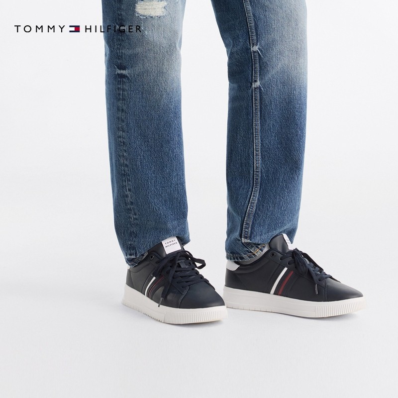 Tommy男装牛皮革条纹厚底运动鞋