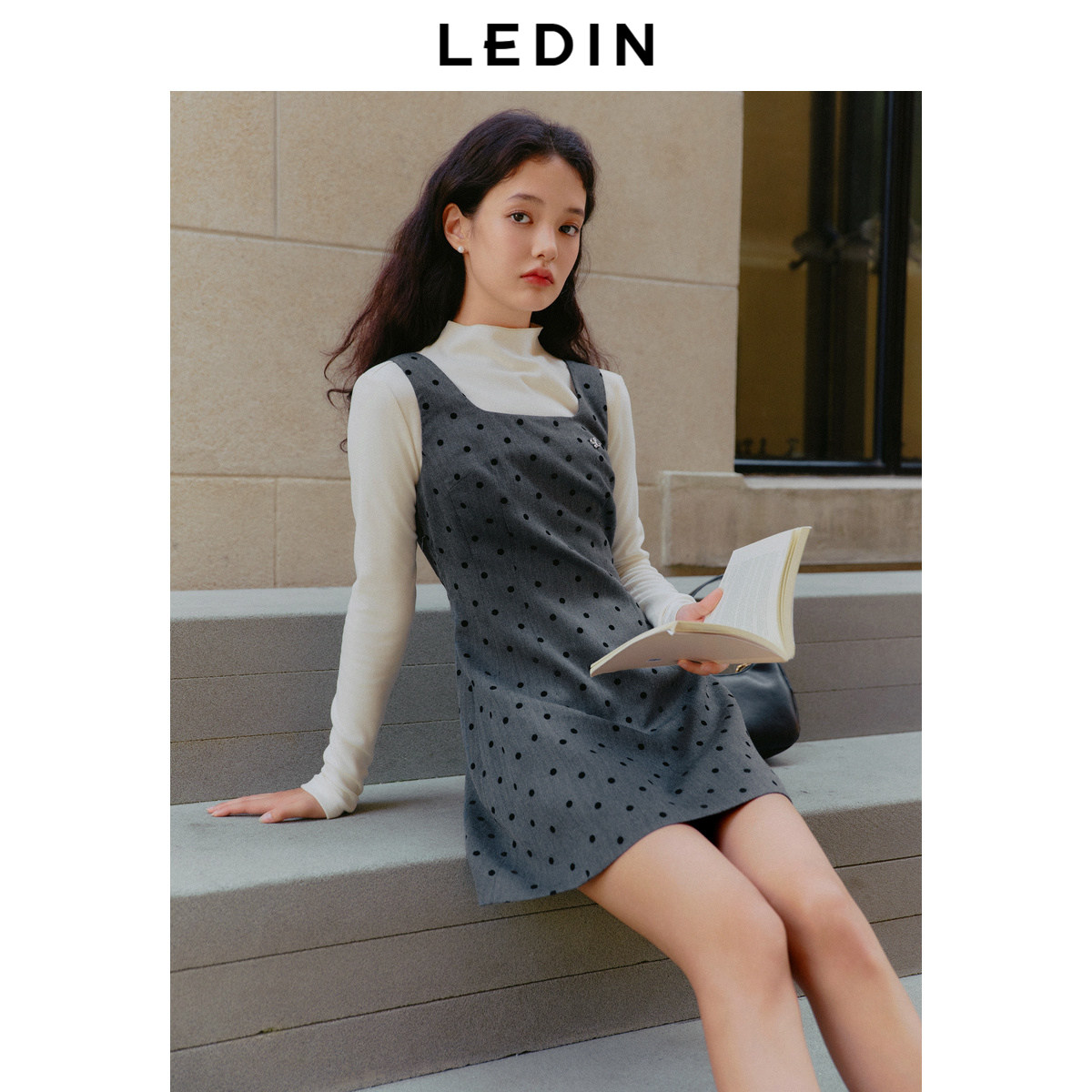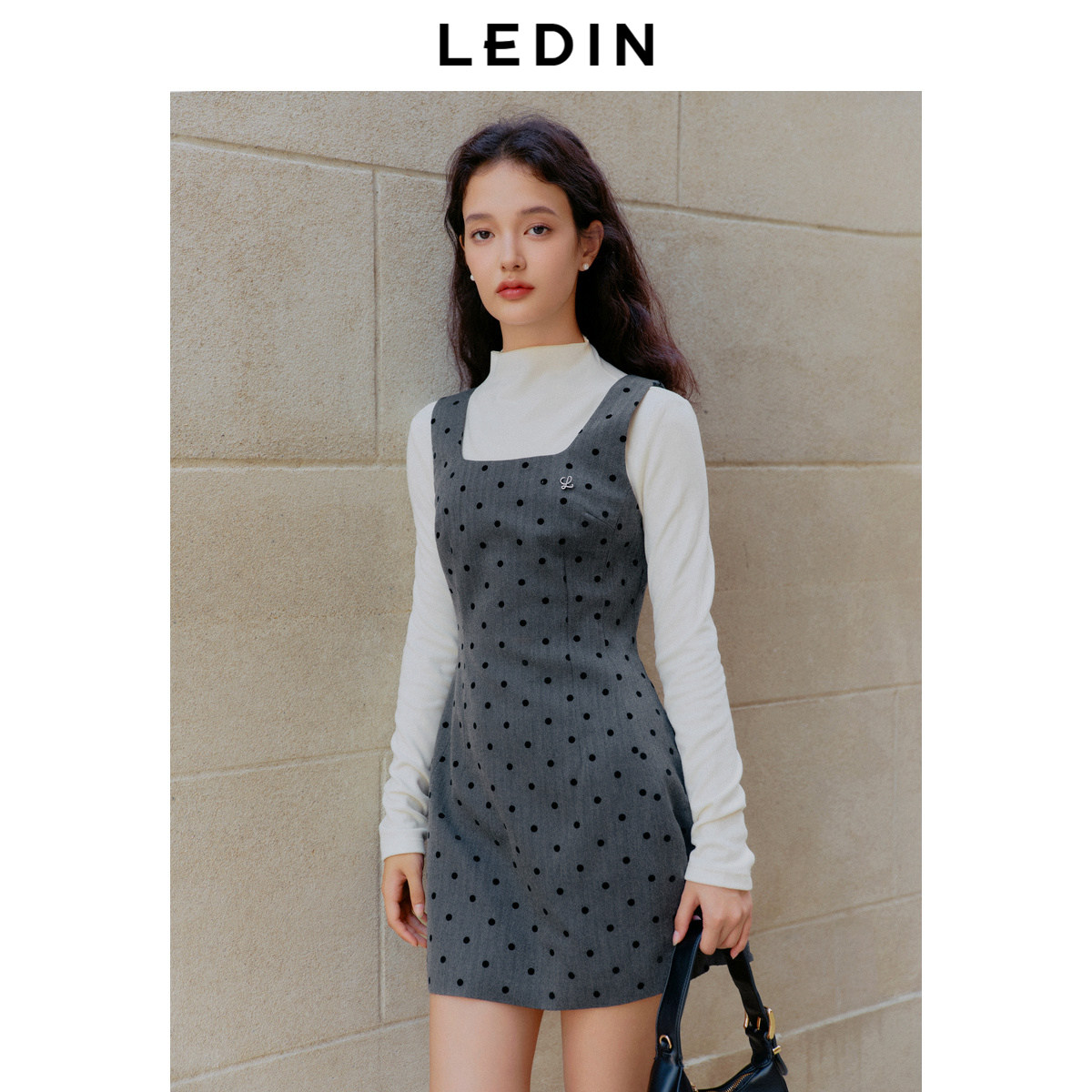 乐町假两件拼接连衣裙年冬季新款复古波点格雷系显瘦A版连衣裙