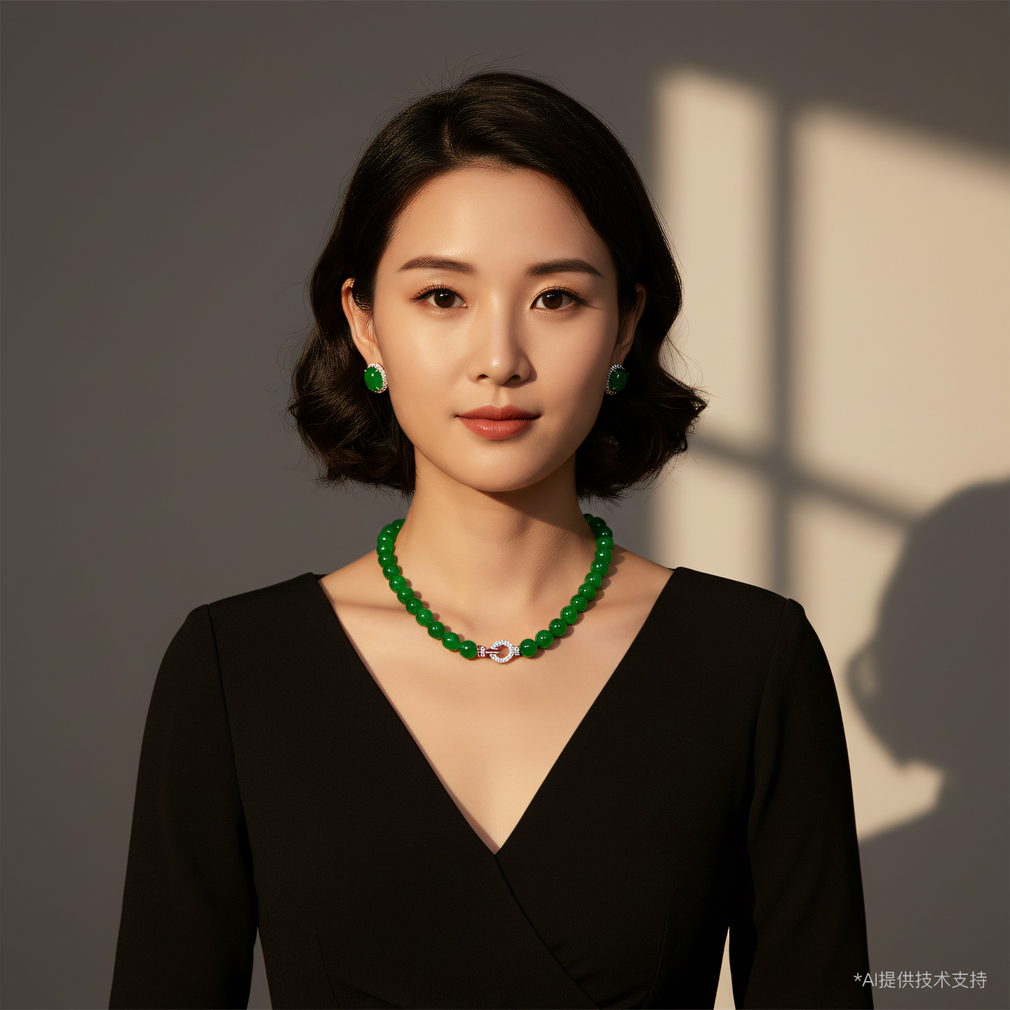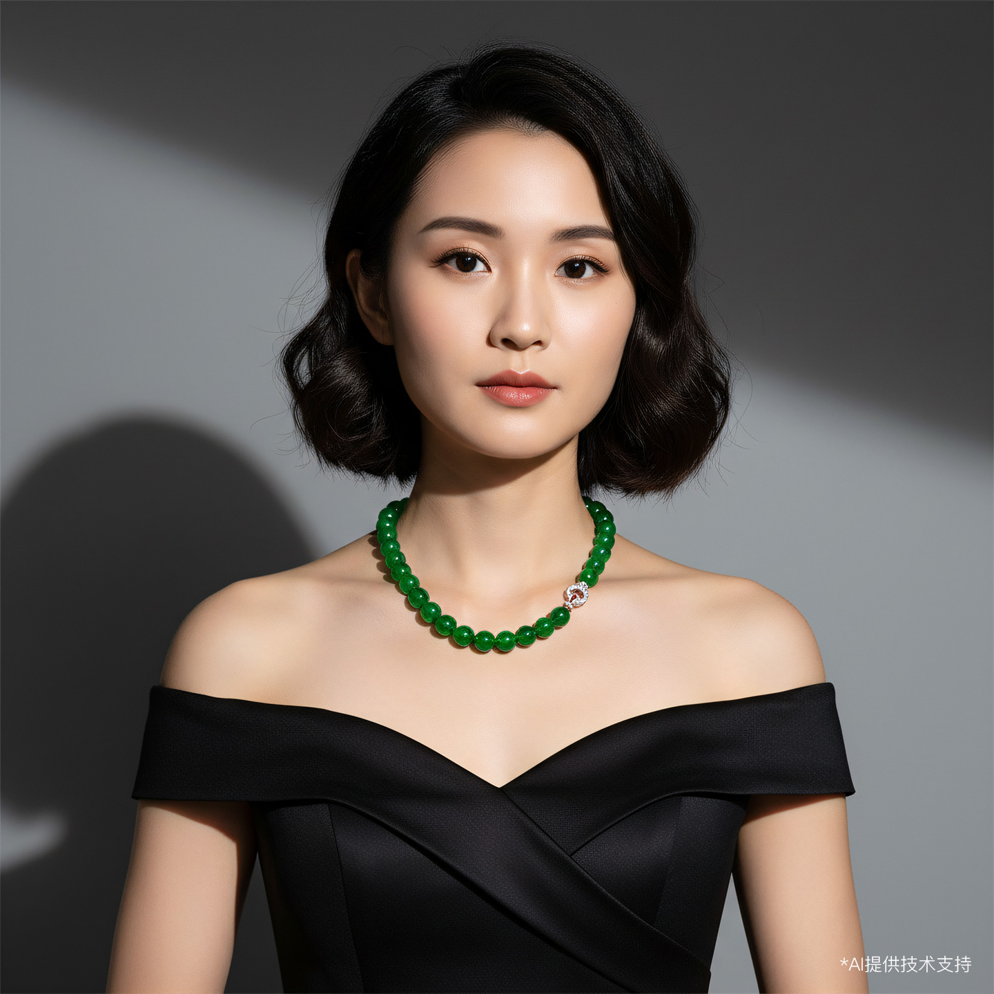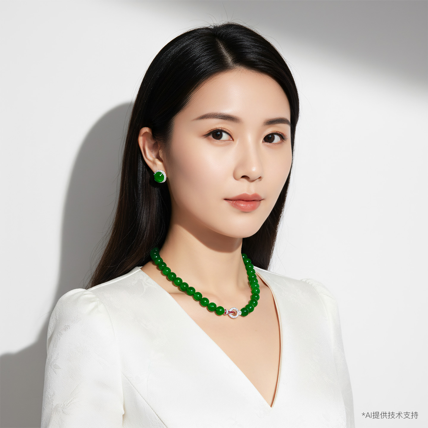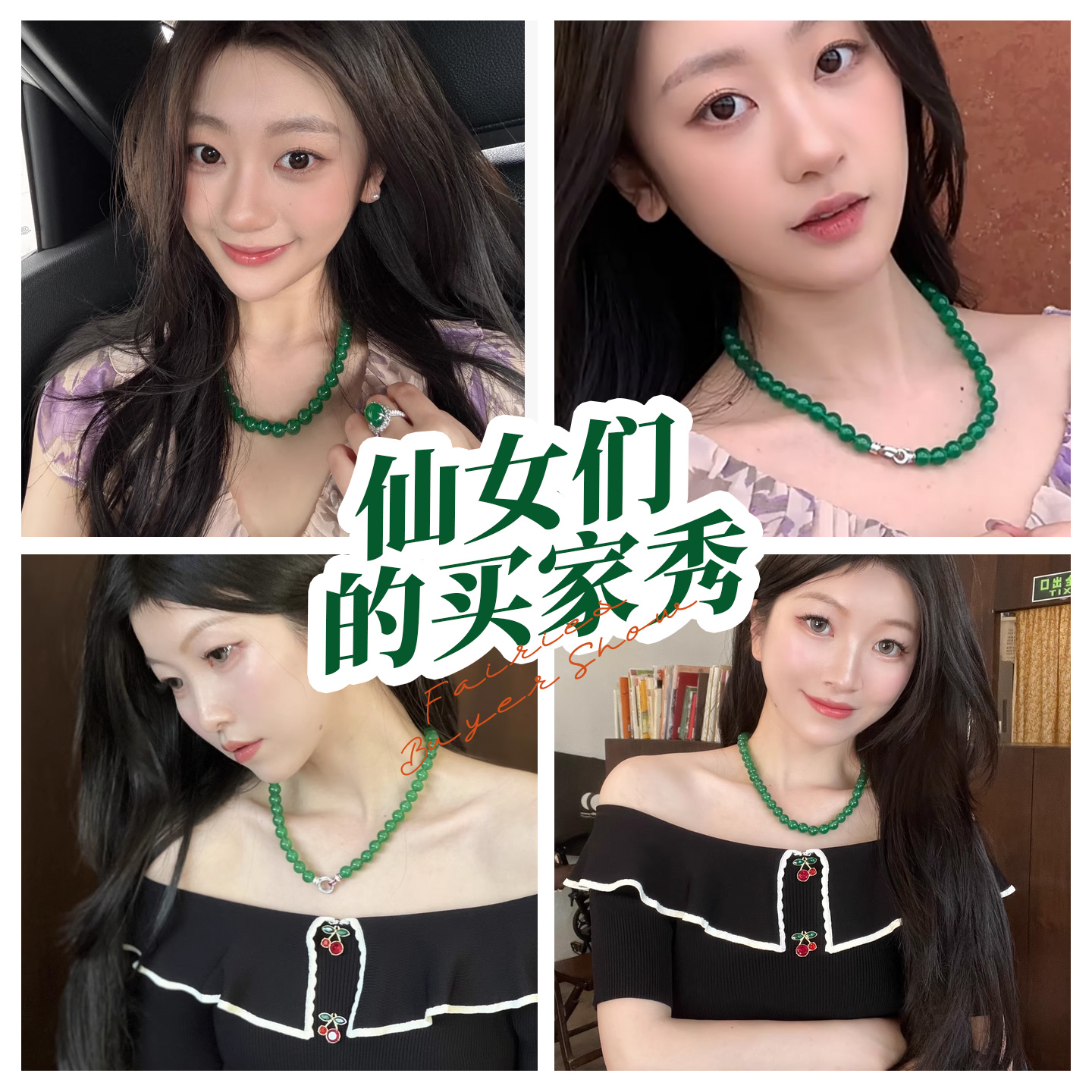 AILEQ宫廷风帝王绿玉髓玛瑙中式妈妈项链高级念佛串珠媲美翡翠k10