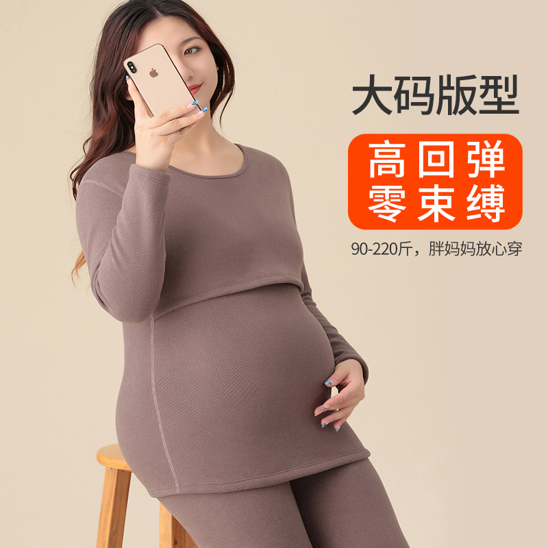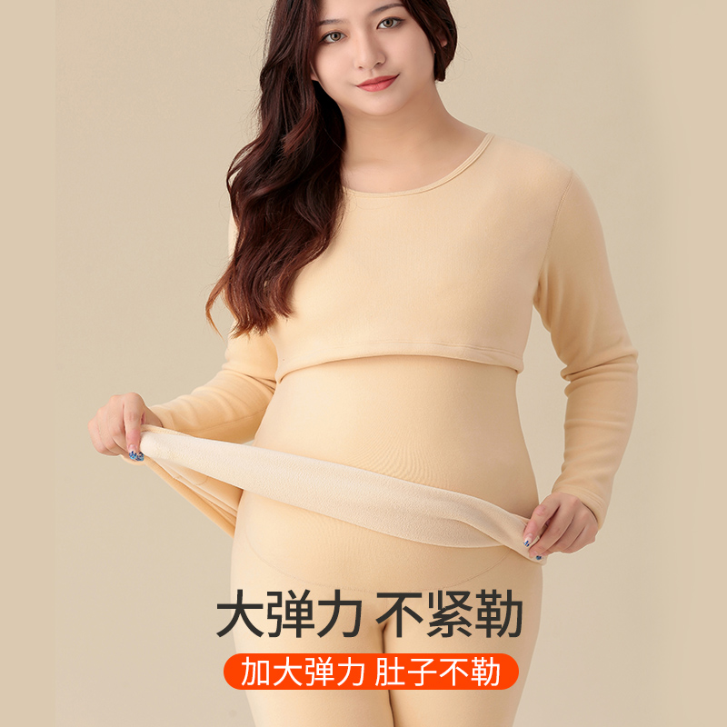 孕妇加绒加厚保暖内衣套装加肥加大码200斤无痕发热德绒秋衣秋裤