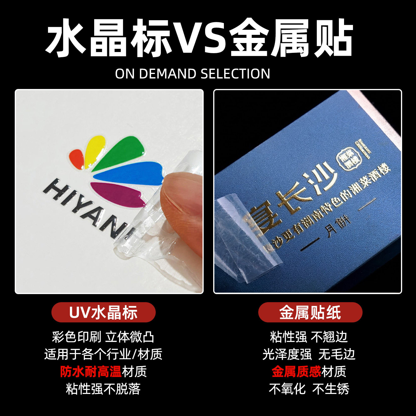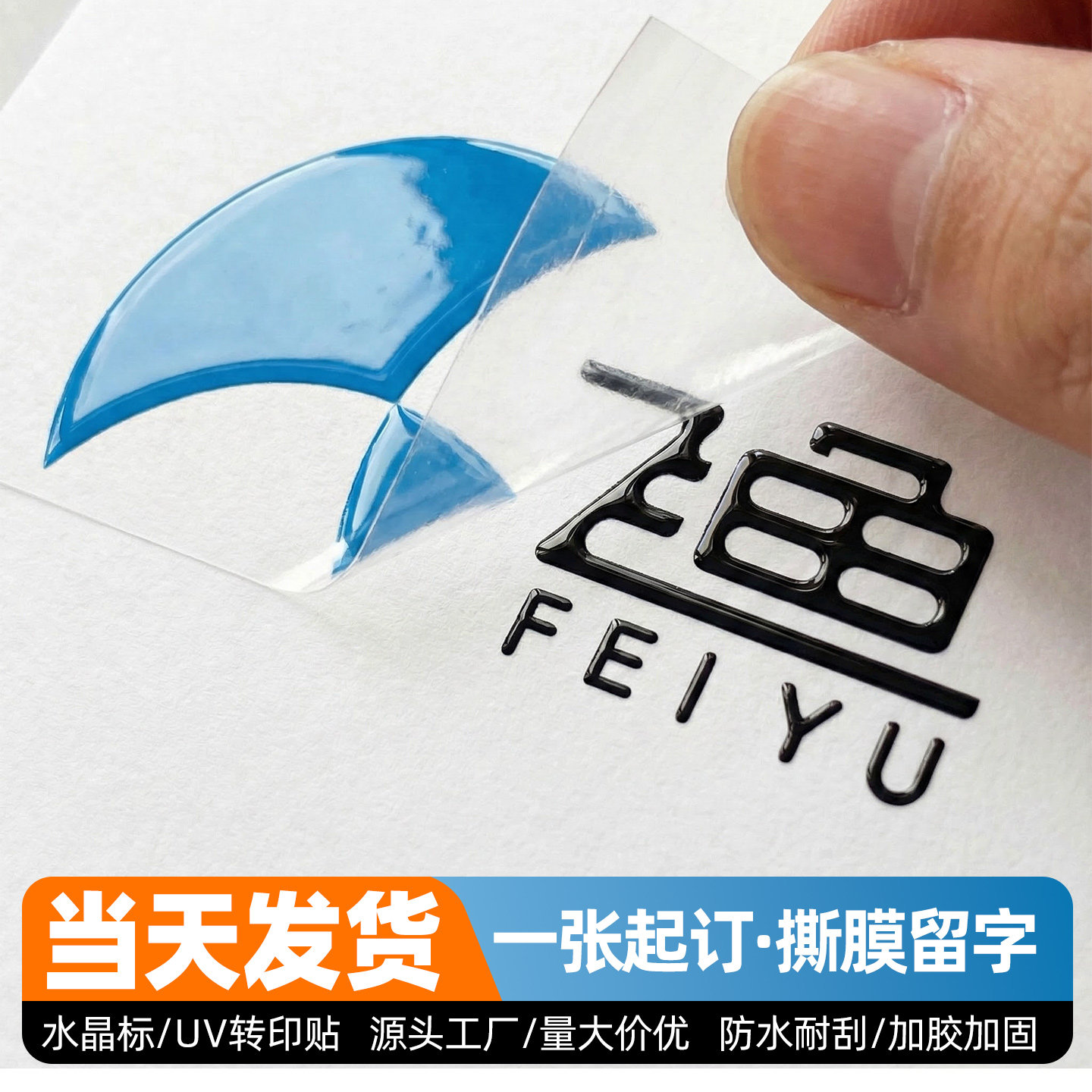 水晶标LOGO定制uv转印贴防水防刮不干胶标签定做茶叶罐礼盒机器设备撕膜留字贴纸设计广告标企业金属转移贴印