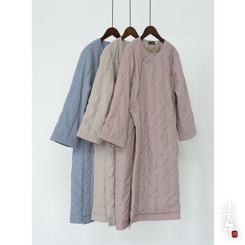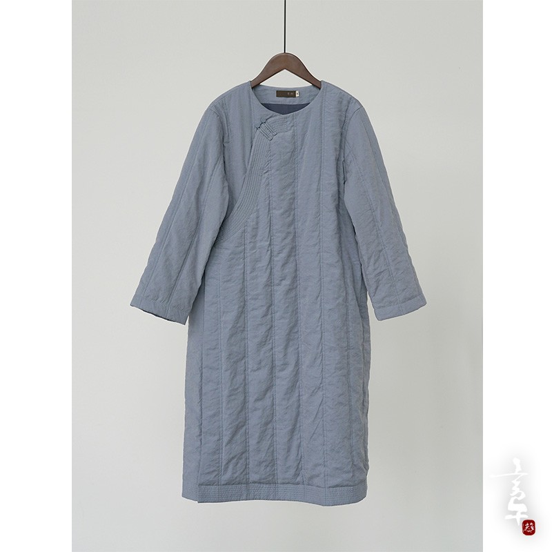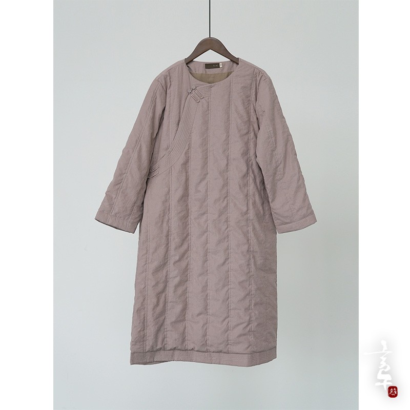 言午葵原创复古仿铜氨柔软斜襟加厚旗袍轻中式清冷压条夹棉连身裙