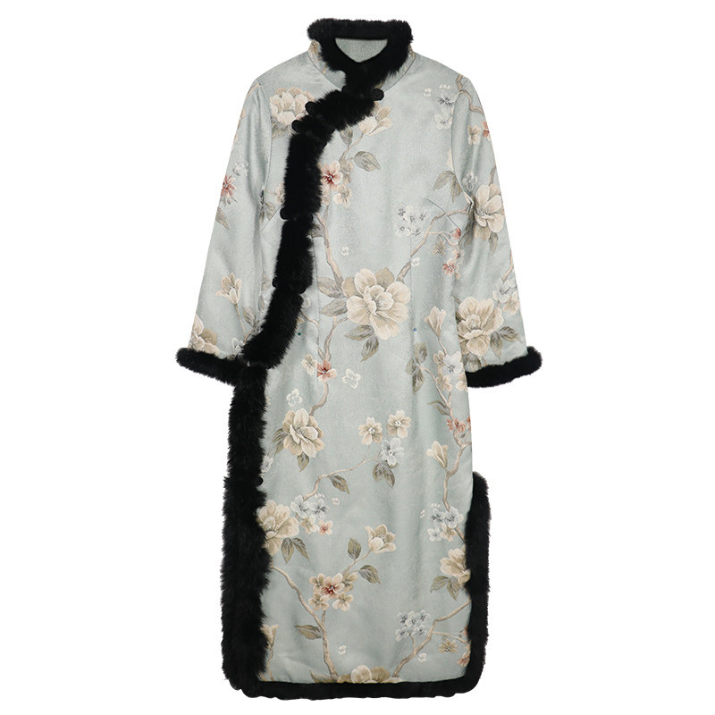 中式长裙国潮加厚唐装棉袄旗袍
