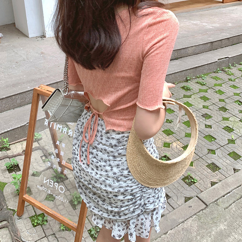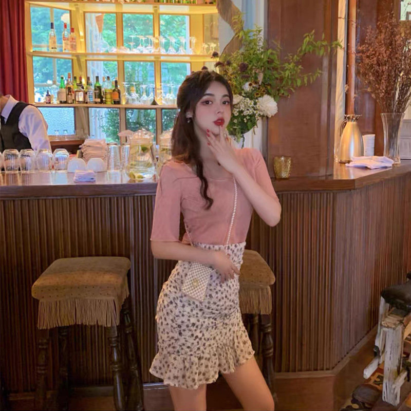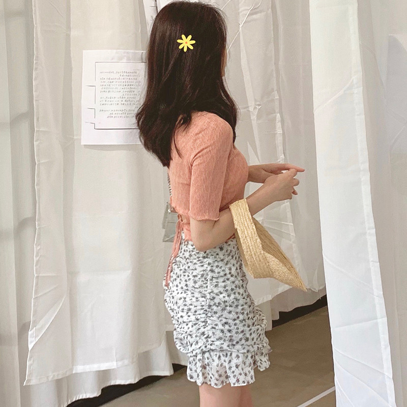 小个子碎花半身裙两件套装女夏高腰a字包臀短裙显瘦荷叶边鱼尾裙
