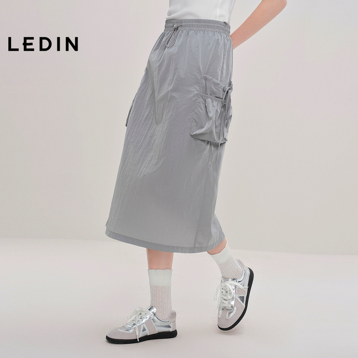 【商场同款】乐町工装口袋长裙秋季新款松紧腰A字半身裙C1GFF3210