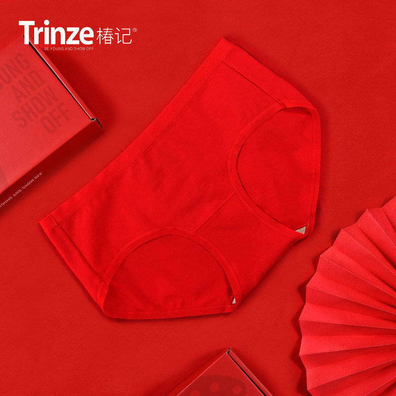 红色内裤女纯棉马年本命年大红色结婚礼物中腰礼盒装女生三角裤