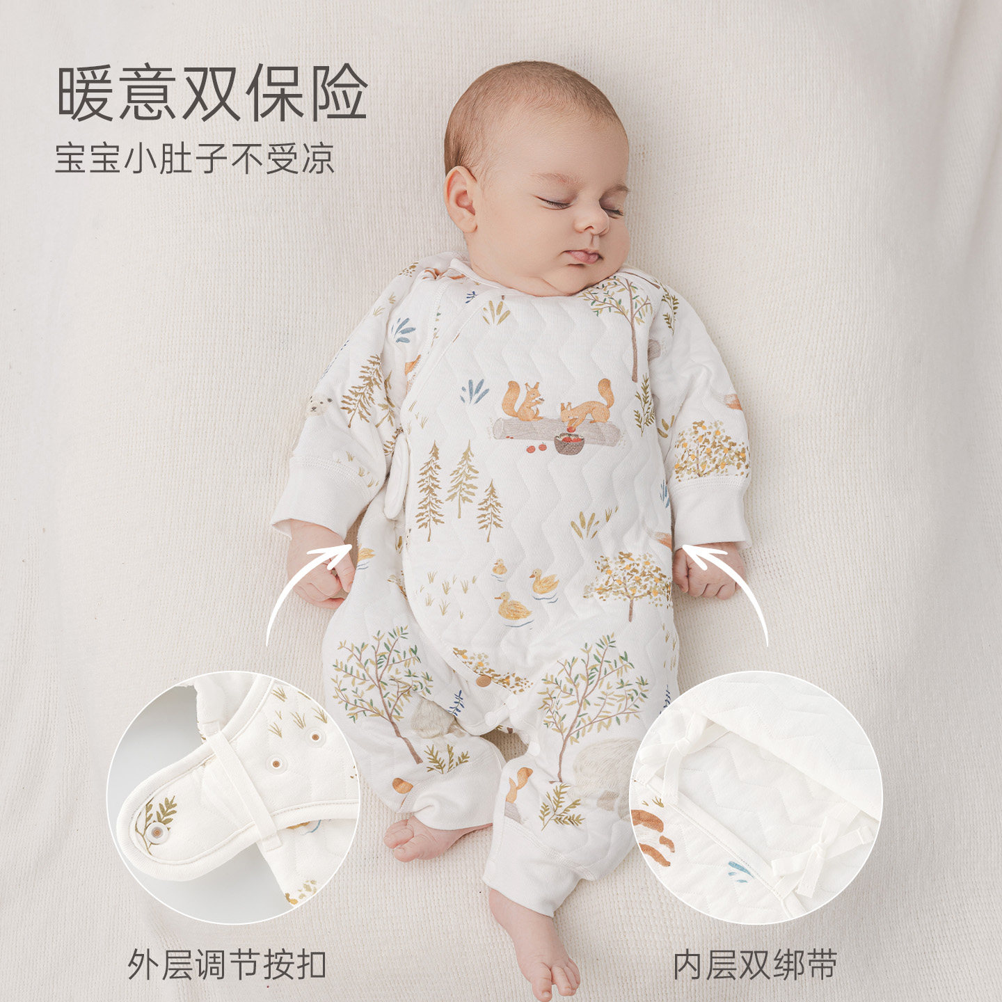 木生棉新生儿纯棉连体衣冬季婴儿三层夹丝哈衣宝宝保暖无骨和尚服