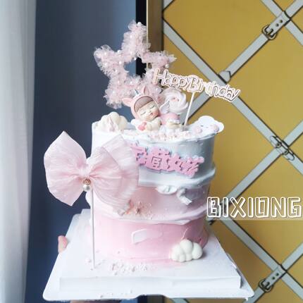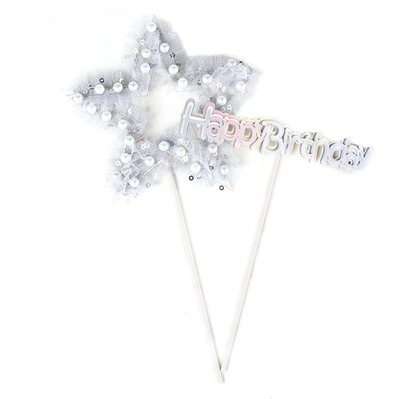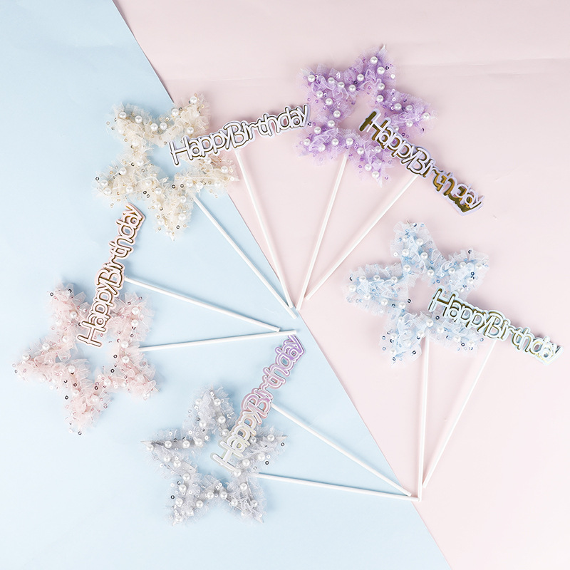 生日蛋糕装饰 创意网红ins风梦幻网纱珍珠星星hp情景烘焙西点插件