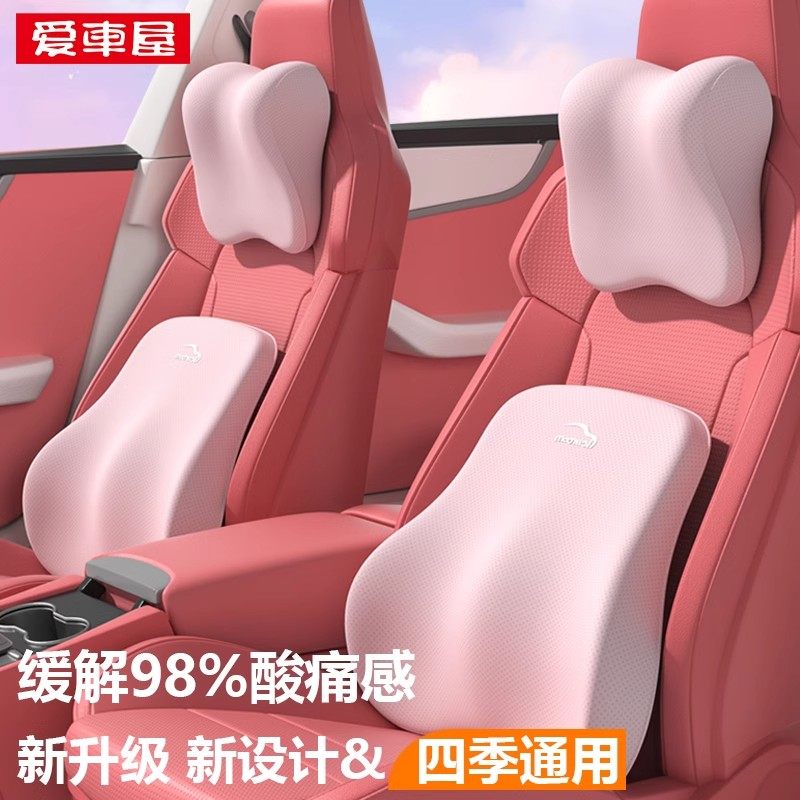 爱车屋汽车头枕车用护颈枕双绑带汽车头枕记忆棉套装开车护颈枕