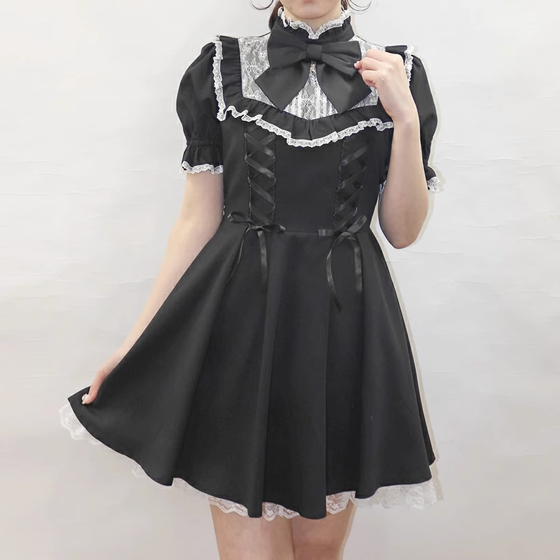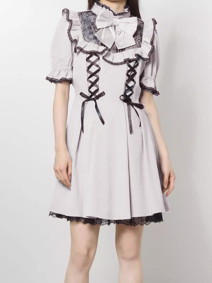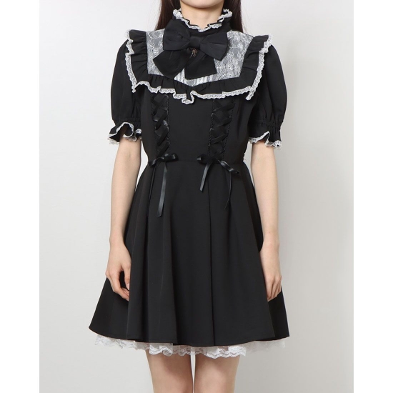 【全款】日系甜美丝带蝴蝶结短袖Lolita裙子洛丽塔蕾丝花边裙子