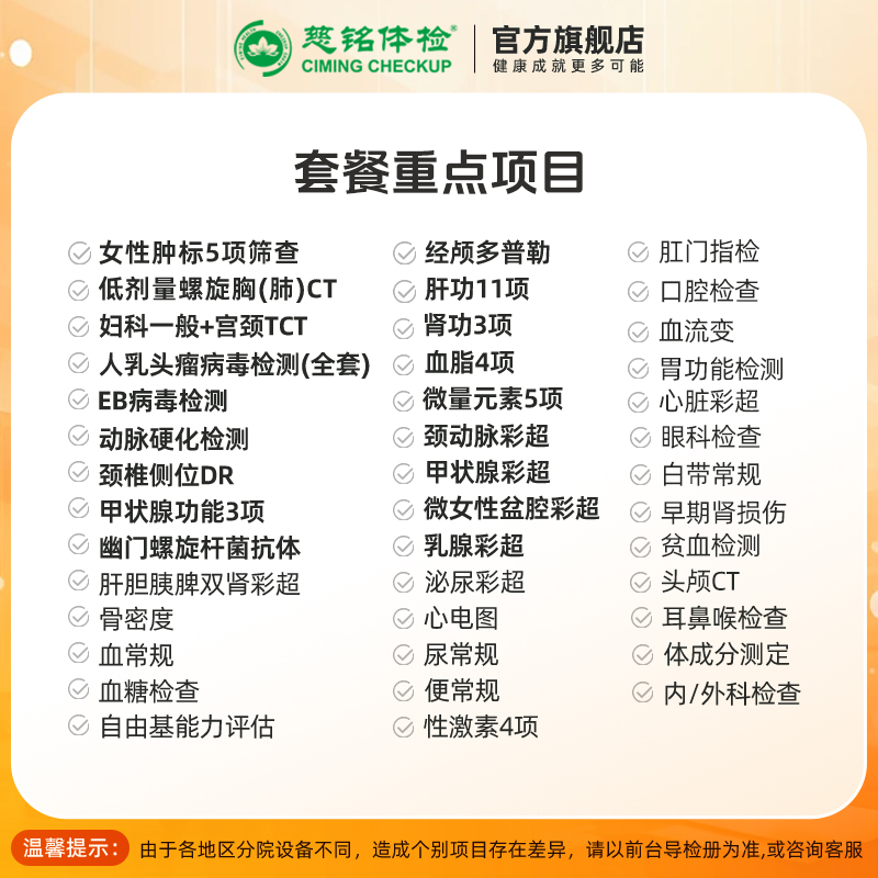 【北京专享】慈铭体检 女性体检豪华F套餐hpv乳腺tct肿瘤双CT女士