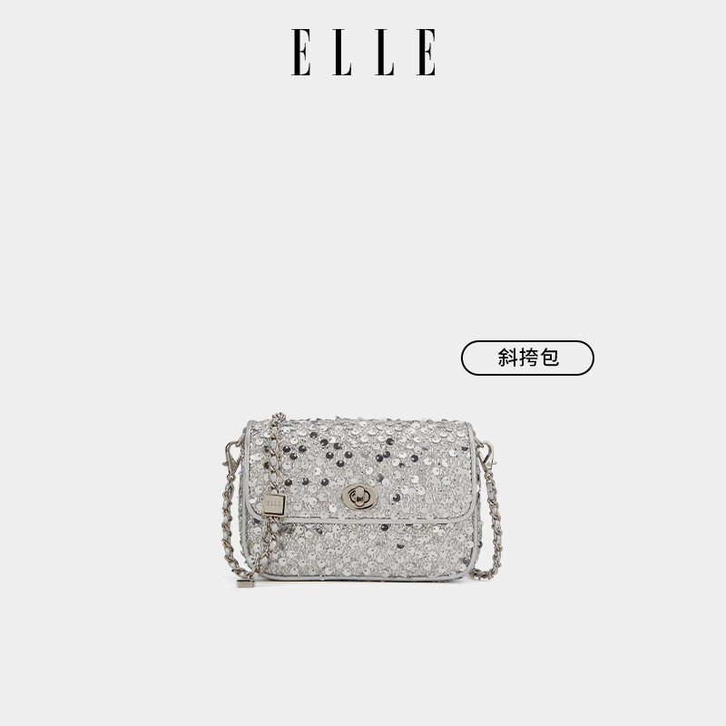 ELLE女包2025新款包包亮片链条水桶包高级感单肩斜挎包手提小圆包