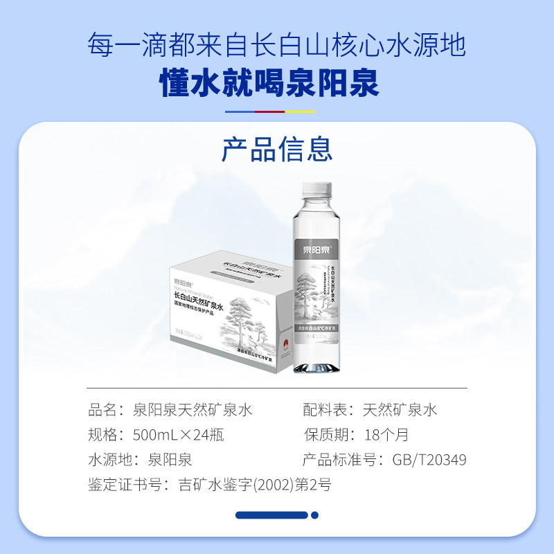 泉阳泉长白山天然自涌矿泉水高端商务会议办公偏硅酸饮用水整箱装