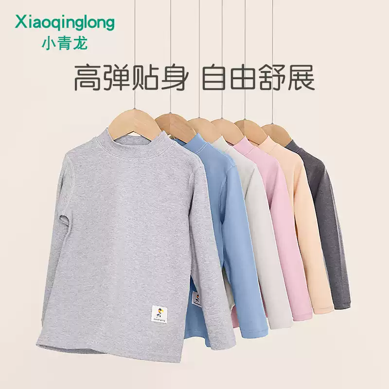 小青龙儿童纯色舒绒半高领保暖内衣套装男女童弹力棉莱卡秋衣秋裤