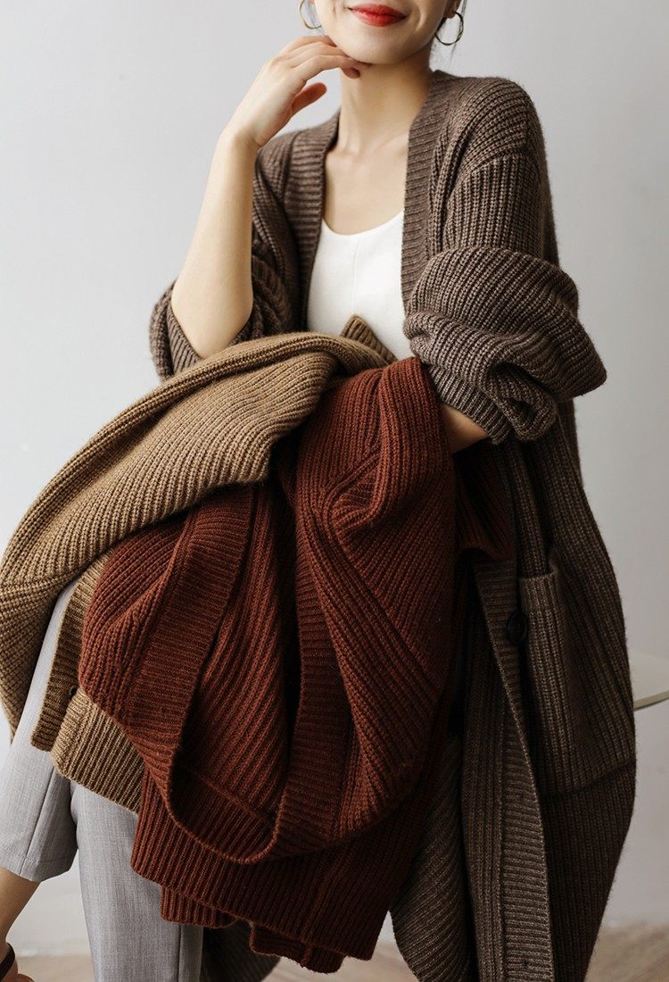 秋冬季女中长款加厚外搭毛衣新款韩版宽松针织开衫长袖上衣外套女