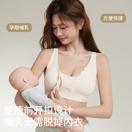 前开扣哺乳内衣防下垂聚拢产后喂奶防走光无痕孕期妇提拉文胸薄款