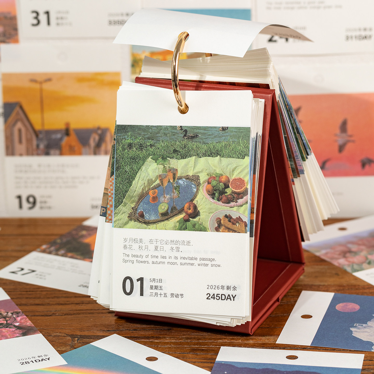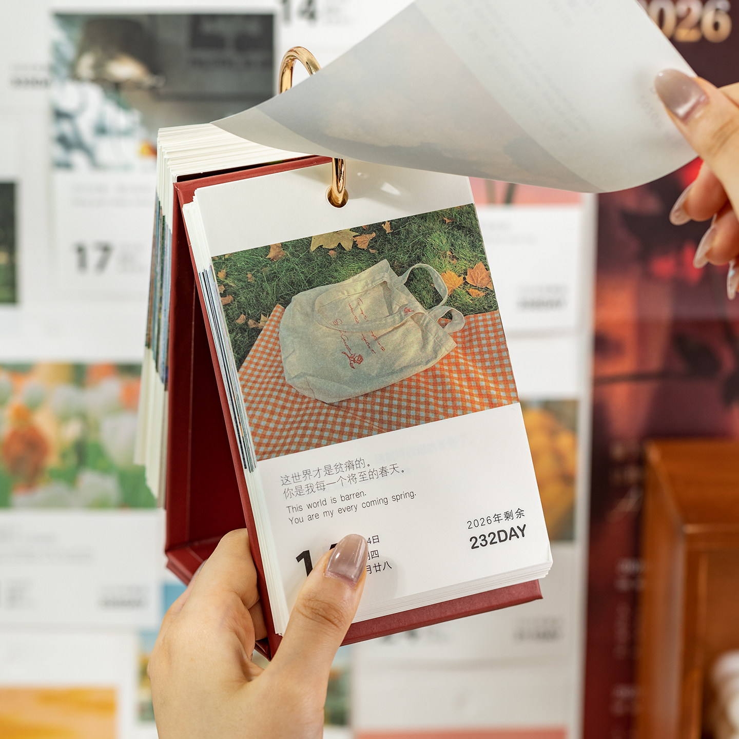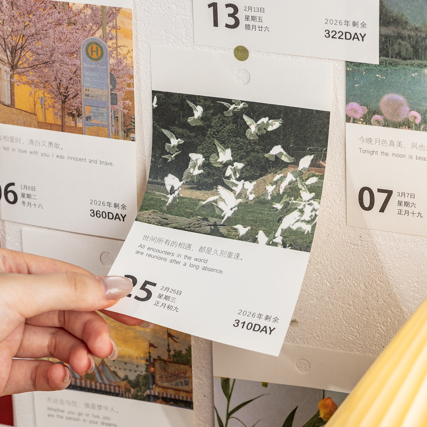 情诗一束日历2026年新款文艺青年桌面治愈摆件ins风景台历2025翻页手撕打卡365天高考倒计时记事本创意简约