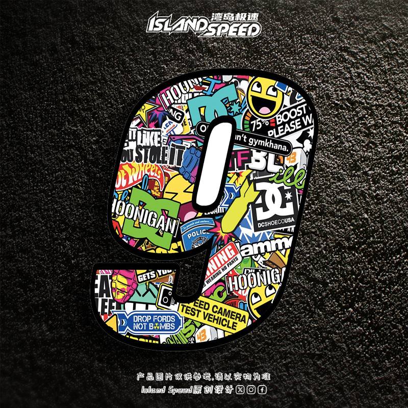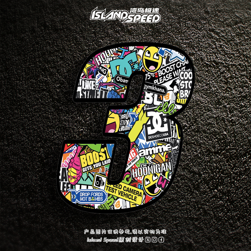 潮流个性数字汽车贴纸涂鸦创意赛车风格摩托车身装饰拉花