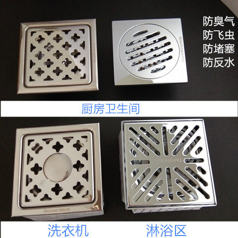 菲时特地漏拉丝304不锈钢加厚防臭方形洗衣机两用淋浴地漏大排量