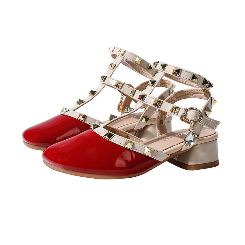 铆钉高跟夏季新款红色中空公主鞋